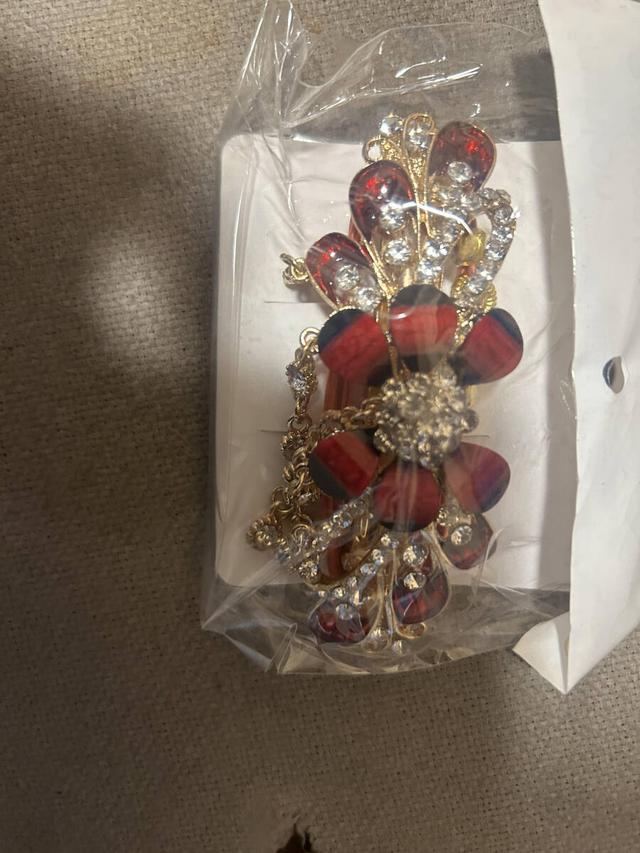 ヘアクリップ バレッタ 大きい ヘアピン 大人びた落ち着いた きらきら輝く水晶のかわいいペンダント 髪留め 水晶 キラキラ髪飾り 赤