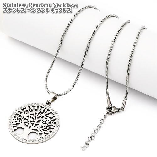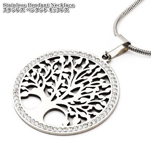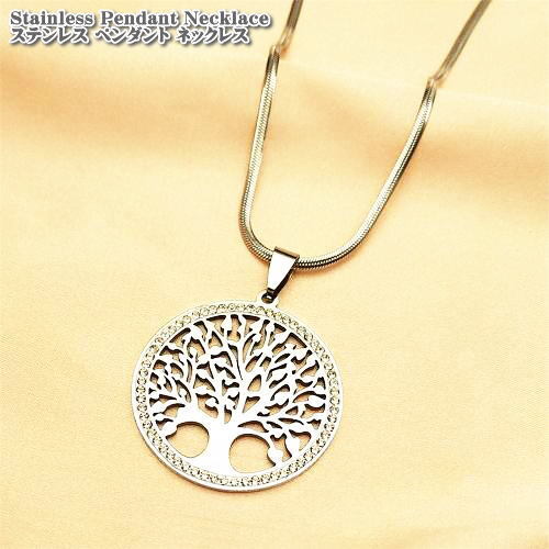 ステンレス 生命の樹 ラインストーン ペンダントネックレス Tree 命の木 ペンダント ネックレス シルバー | |