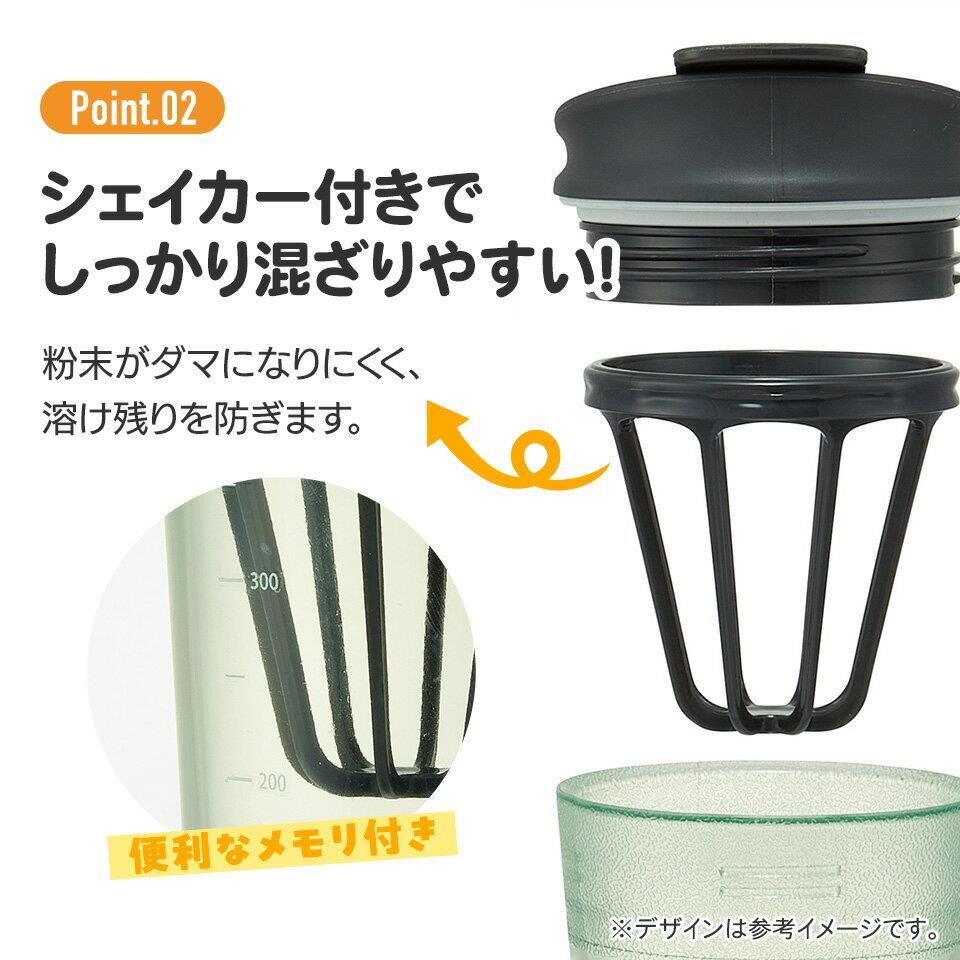 ●シェイカー付きで中身がしっかり混ざりやすい。