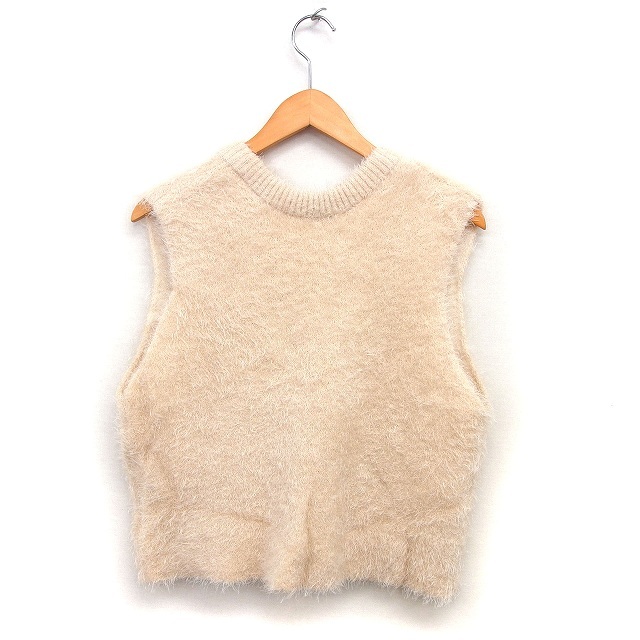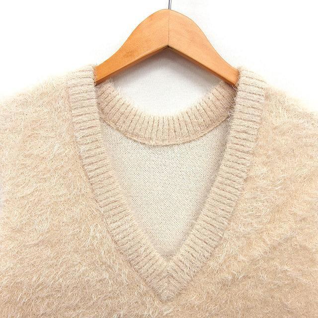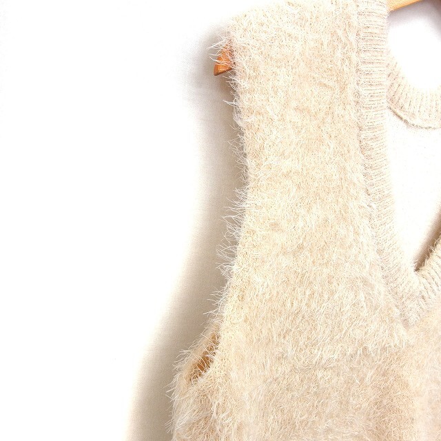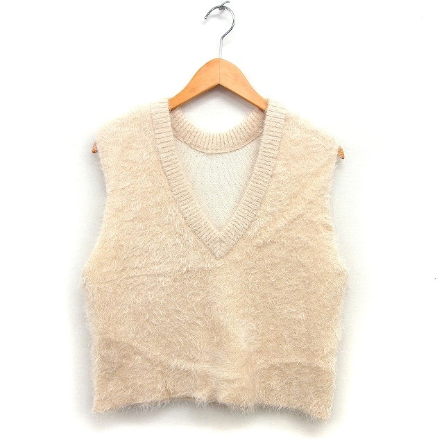 ディスコート Discoat シャギーニット ベスト Vネック リブ クロップド プルオーバー F ベージュ /NT23 レディース