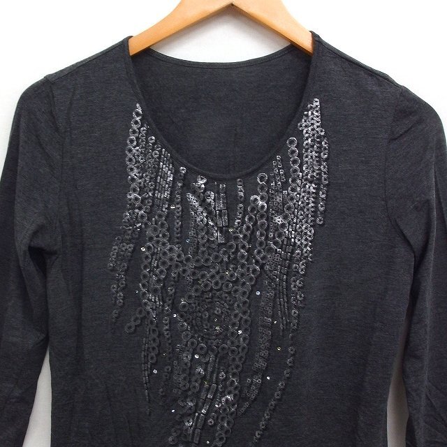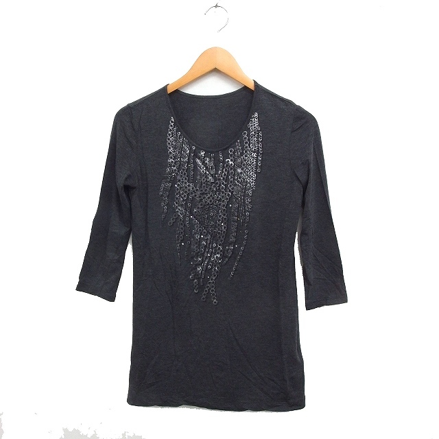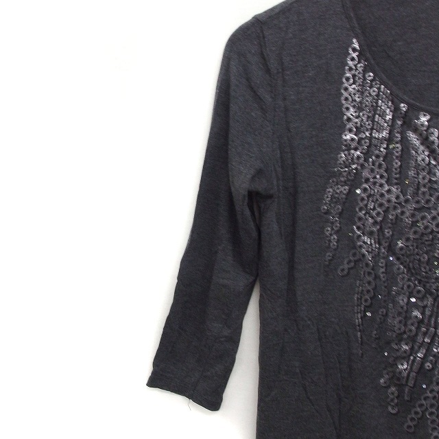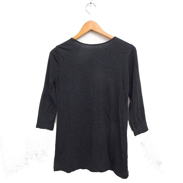 コムサ COMME CA プリント Tシャツ カットソー 7分袖 ロング丈 9 チャコールグレー /FT18 レディース