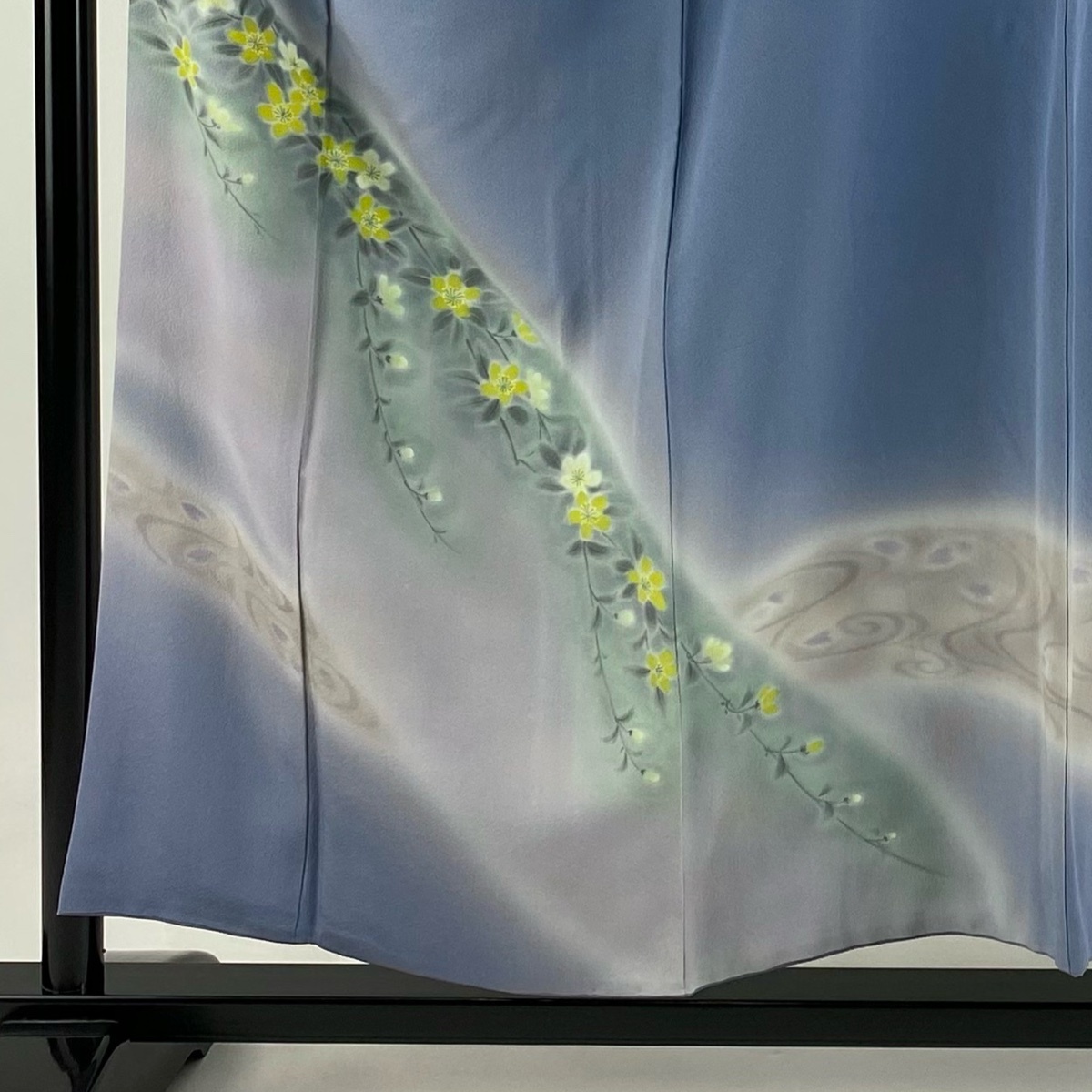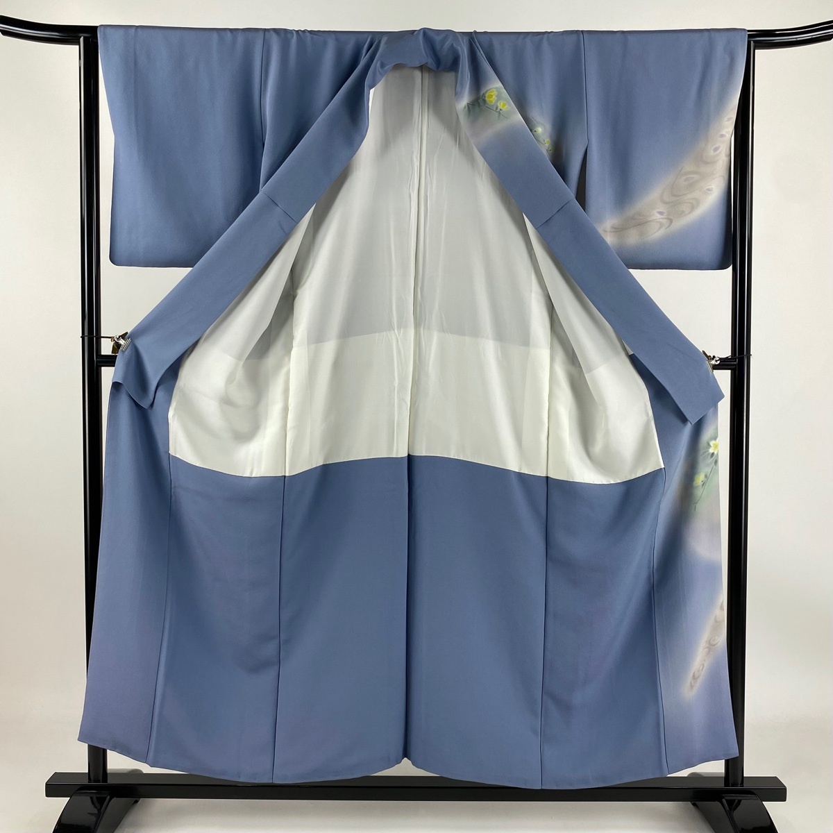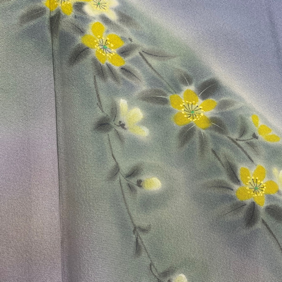 | 訪問着 秀品 草花 流水 ぼかし 青灰色 袷 身丈153 裄丈63.5 S 正絹 【中古】 |