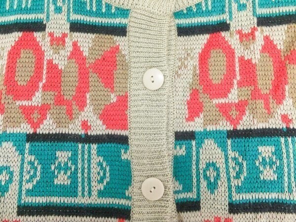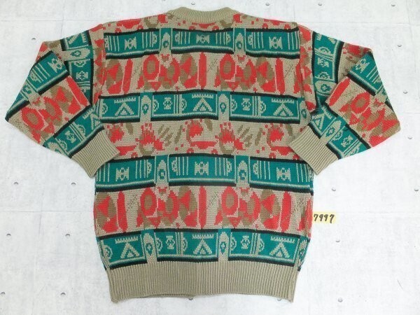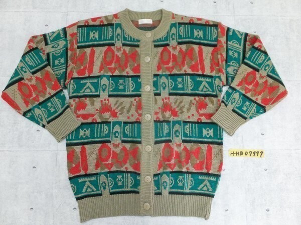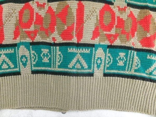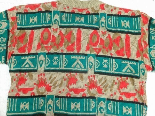 おしゃれ!CORROSE エスニック フォークロア 丸首 総柄 ニット カーディガン トップス 羽織り カジュアル 個性的 古着 ユーズド トップス