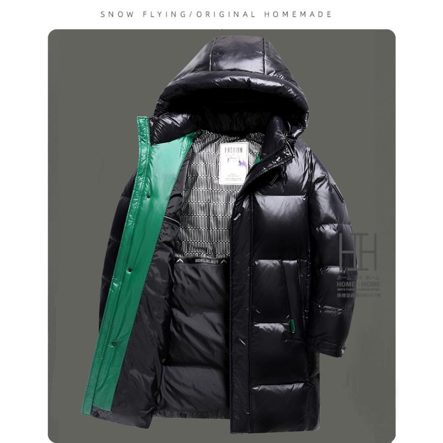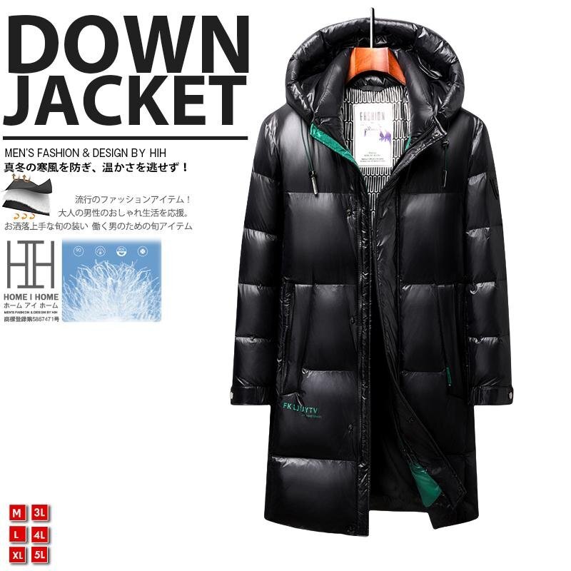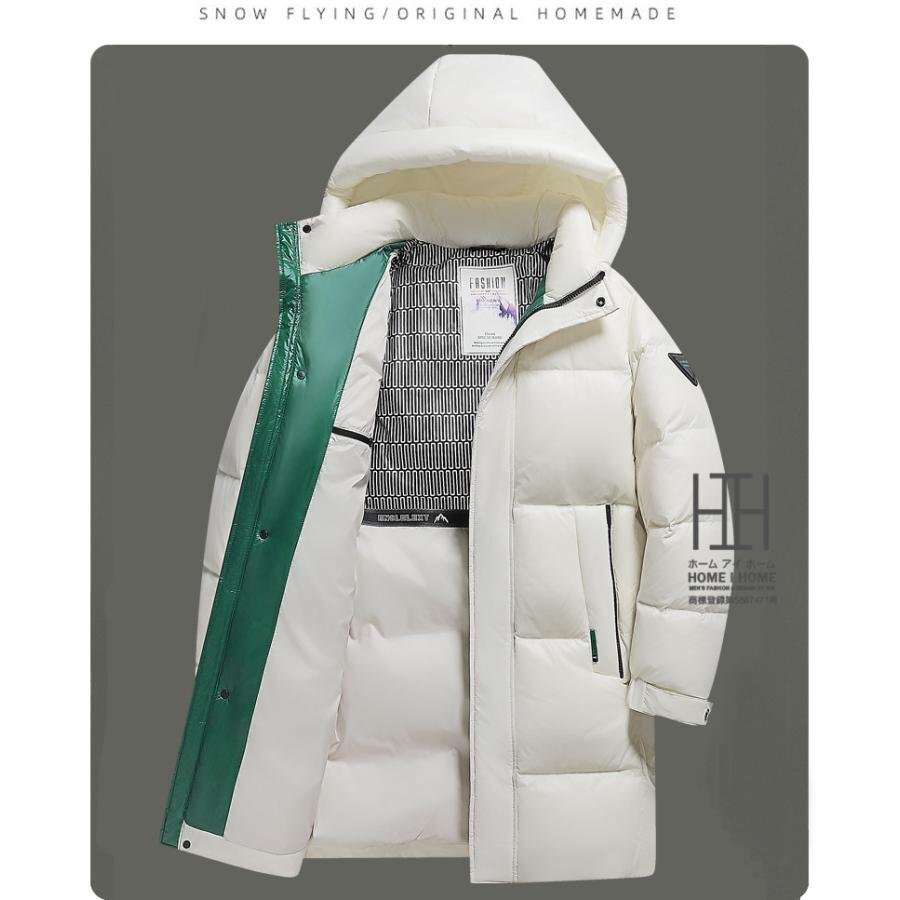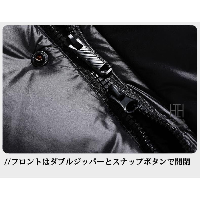 ダウン90%、フェザー10%を使用した軽くて暖かいロング丈の本格ダウンジャケット。