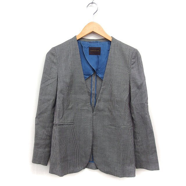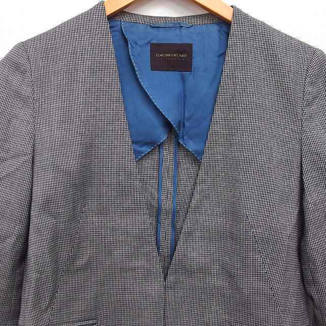 トゥモローランドコレクション TOMORROWLAND collection 柄 ノーカラージャケット ウール 34 ブラック 黒 グレー 灰 /FT23 レディース