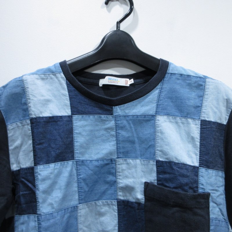 ビームスライツ BEAMS Lights Tシャツ カットソー パッチワーク デニム 半袖 紺 ネイビー M メンズ