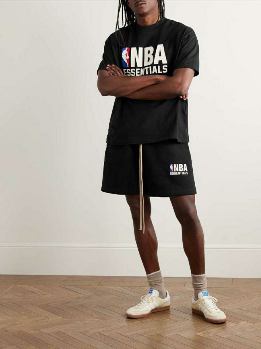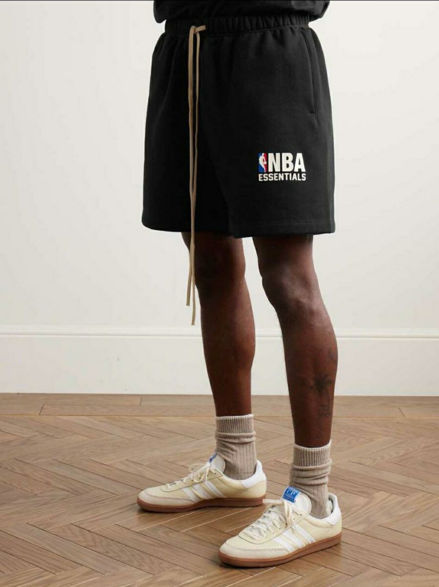 Fear of God Essentialsは、クラシックなバスケットボールユニフォームからインスピレーションを得ていることも多いため、NBAとのコラボレーションはまさにうってつけと言えるでしょう。公式ハイブリッドロゴをアップリケしたストレートレッグショーツは、裏起毛コットン混紡ジャージー素材を使用し、伸縮性のあるウエストバンドとシグネチャーの長めのドローストリングが特徴です。