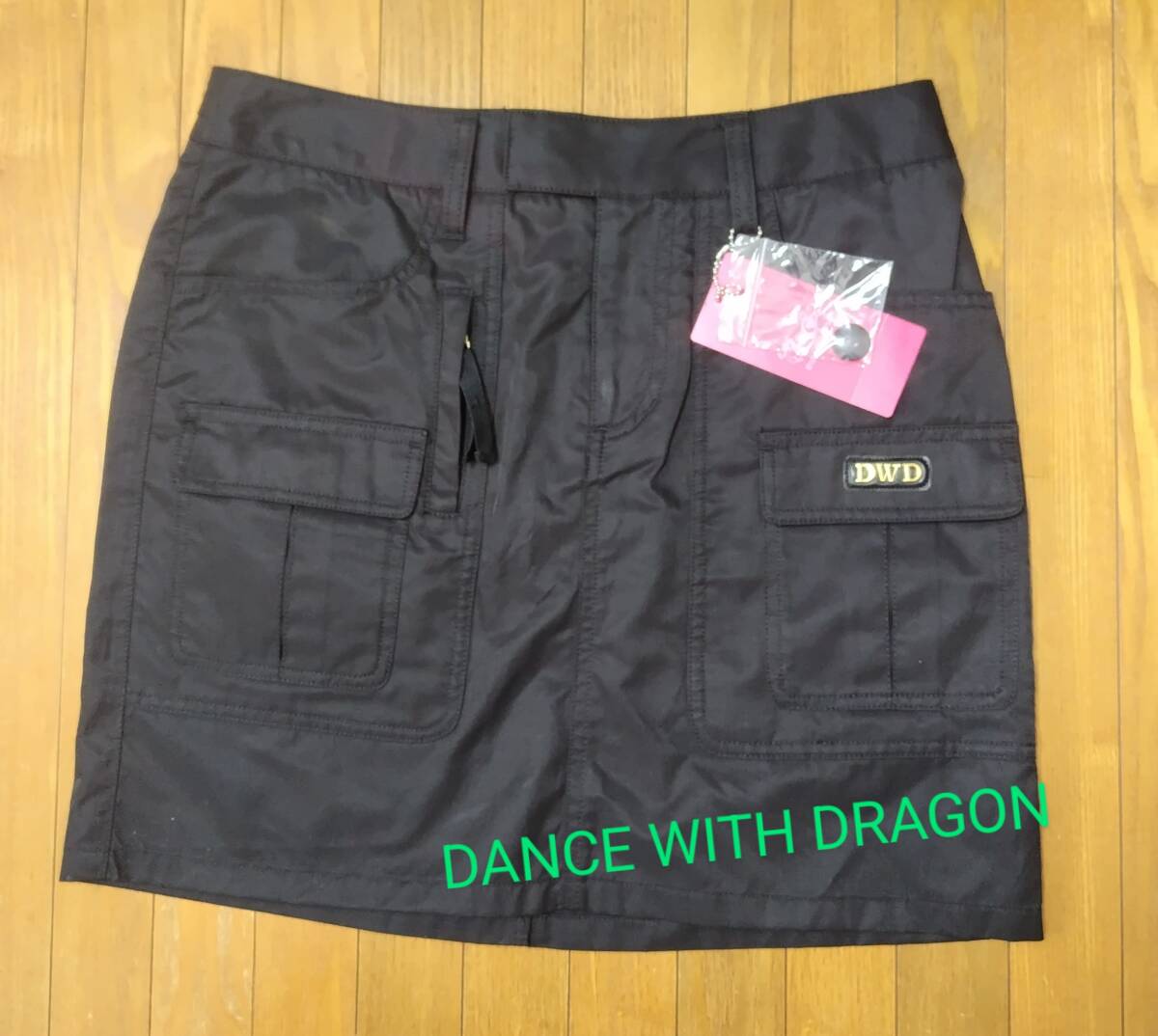 新品 未使用 DANCE WITH DRAGON ダンスウィズドラゴン ゴルフ スカートロゴ刺繍 2 M 黒 ブラック レディース ゴルフウェア