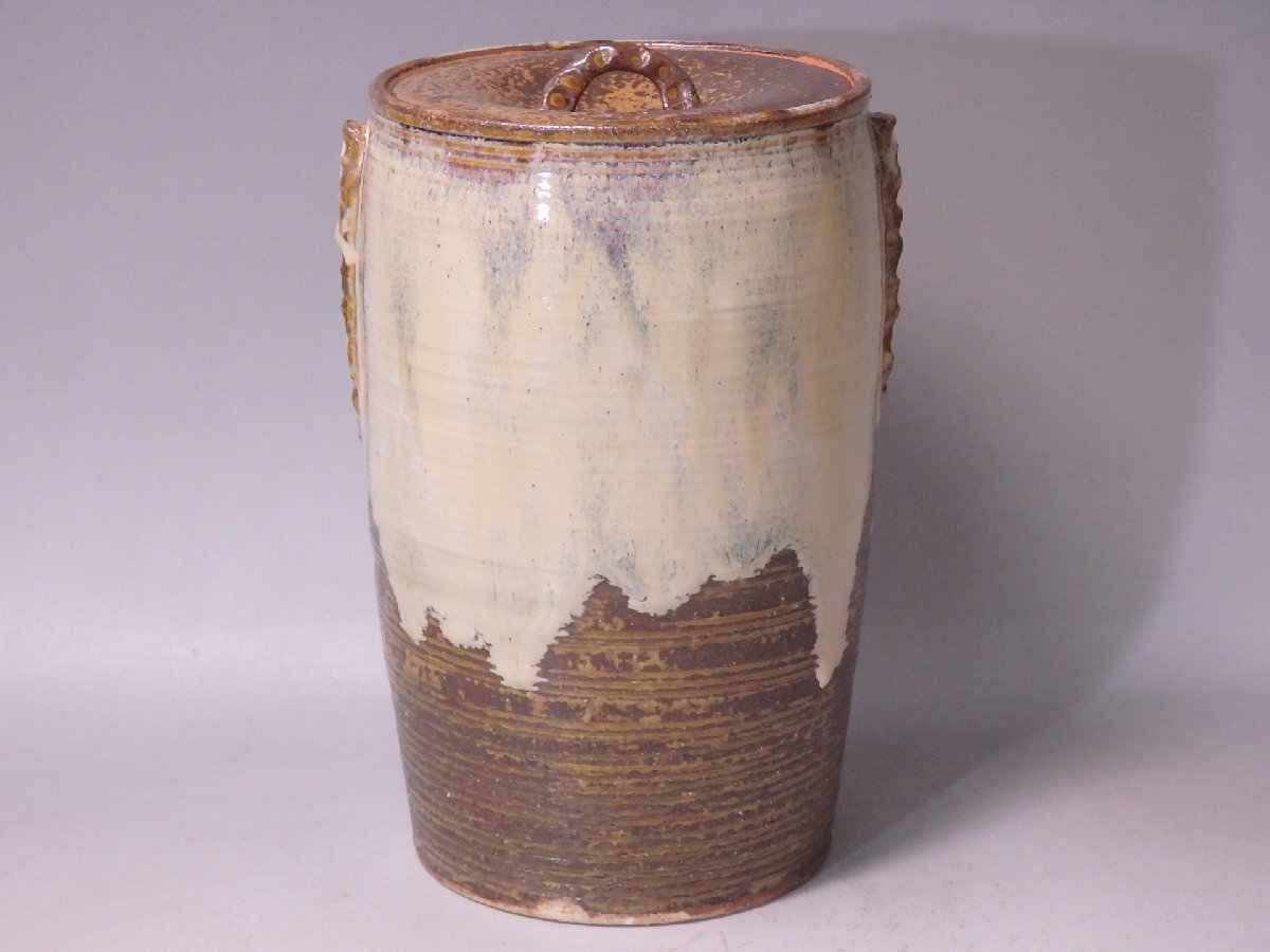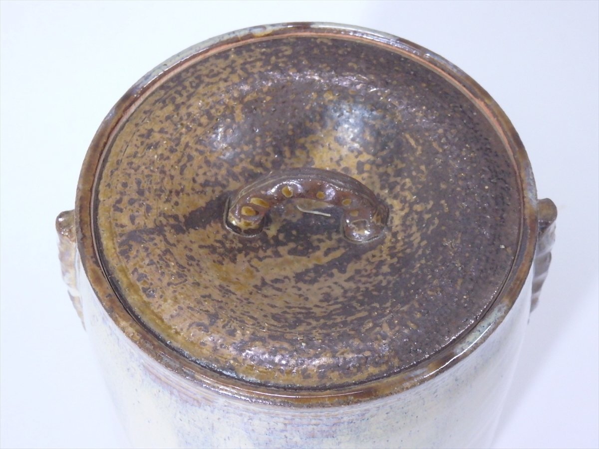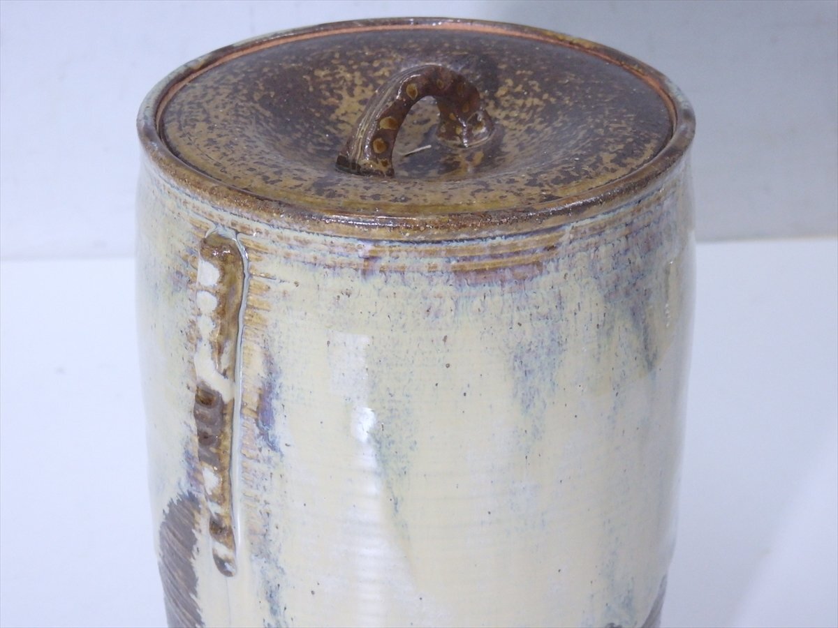 ★高麗・李朝時代の茶陶技術を得意とする窯元 清和窯【高取水指】状態良好! 幅13.5cm 高さ20cm 蓋直径10.7cm 茶道具 京焼 茶器 セール!