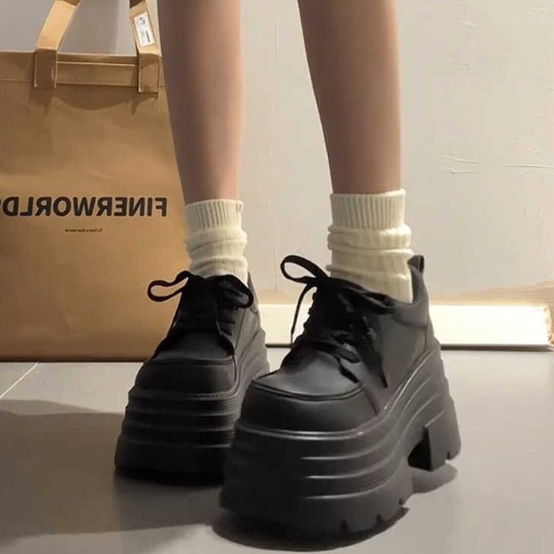 靴 s285 黒【24cm 】厚底 7cm スニーカー 身長アップ 美脚 レディース リベット ゴスロリ ゴシック パンク プラットフォーム ロリータ 1