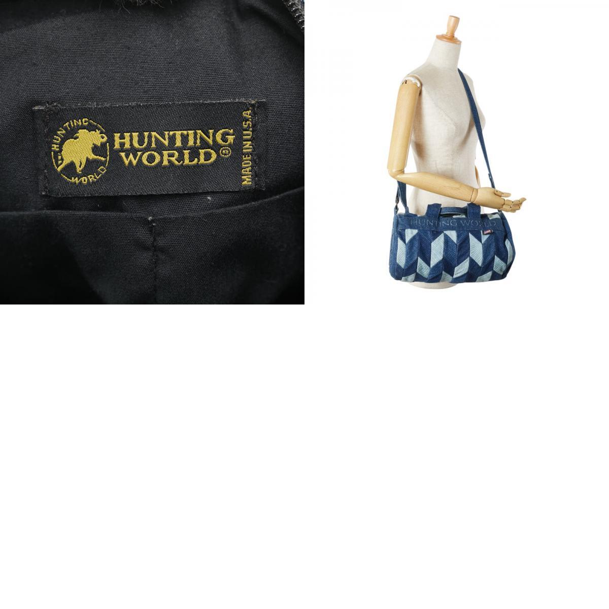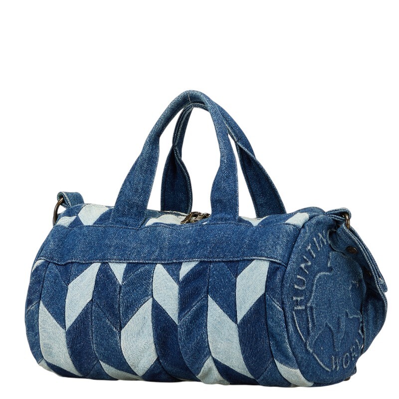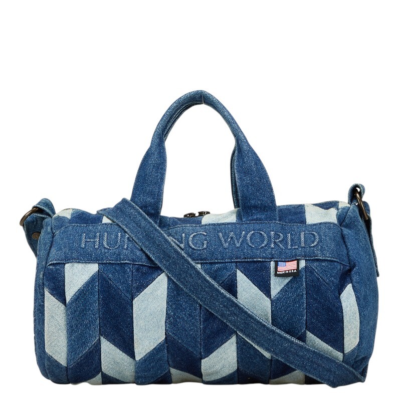 ハンティングワールド ロゴ ドラムバッグ ハンドバッグ ショルダーバッグ ブルー デニム レディース HUNTING WORLD 【中古】