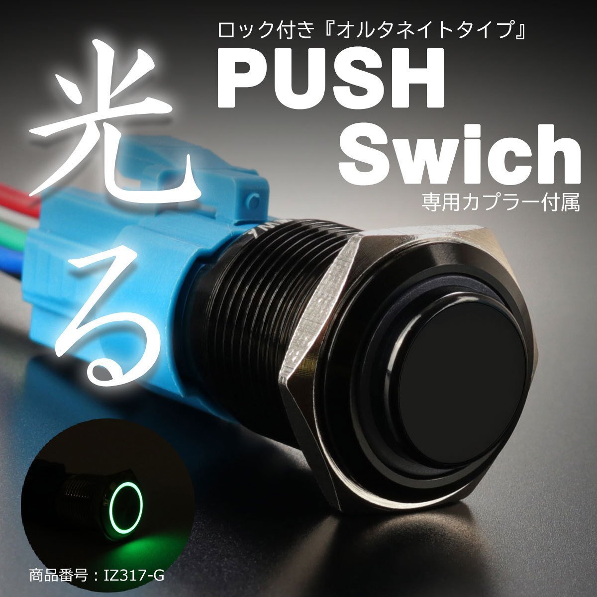 ■商品コード IZ317-G ■商品タイトル プッシュスイッチ 18Φ グリーン LEDリング付き オルタネイトタイプ ■商品説明 一度押すとボタンが凹んで保持、もう一度押すと元に戻るオルタネイトタイプ。 配線方法でオン/オフはお好みに設定可能。 LEDの点灯も常時点灯、スイッチの動作に合わせての点灯など工夫次第で カスタマイズ可能。専用カプラー付属でスイッチへの配線作業もカンタン。 ■商品概要 ・LEDカラー:グリーン ・スイッチ種類:オルタネイト式 ・動作電圧:DC12V (MAX 3A) ・入数:数量1で1セット ■サイズ:画像に掲載 ■注意 ※出品商品はタイトルのサイズ・発光色です。 ■その他カラー |