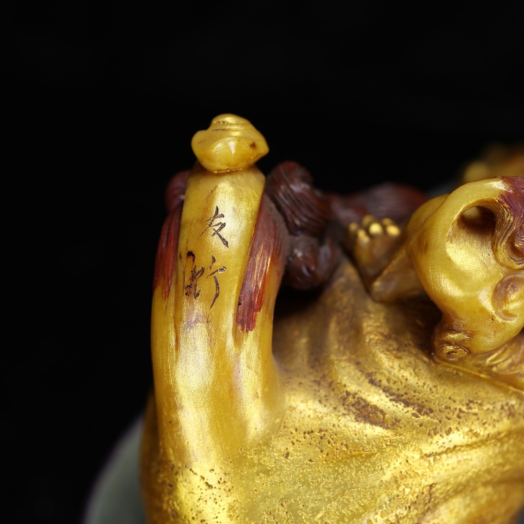 唐物 【清代篆刻家 徐堅 号:友竹】寿山石 田黄石 事事如意 置物 天然石 手彫 篆刻 極細工 中国古玩 骨董品 古美味 D69