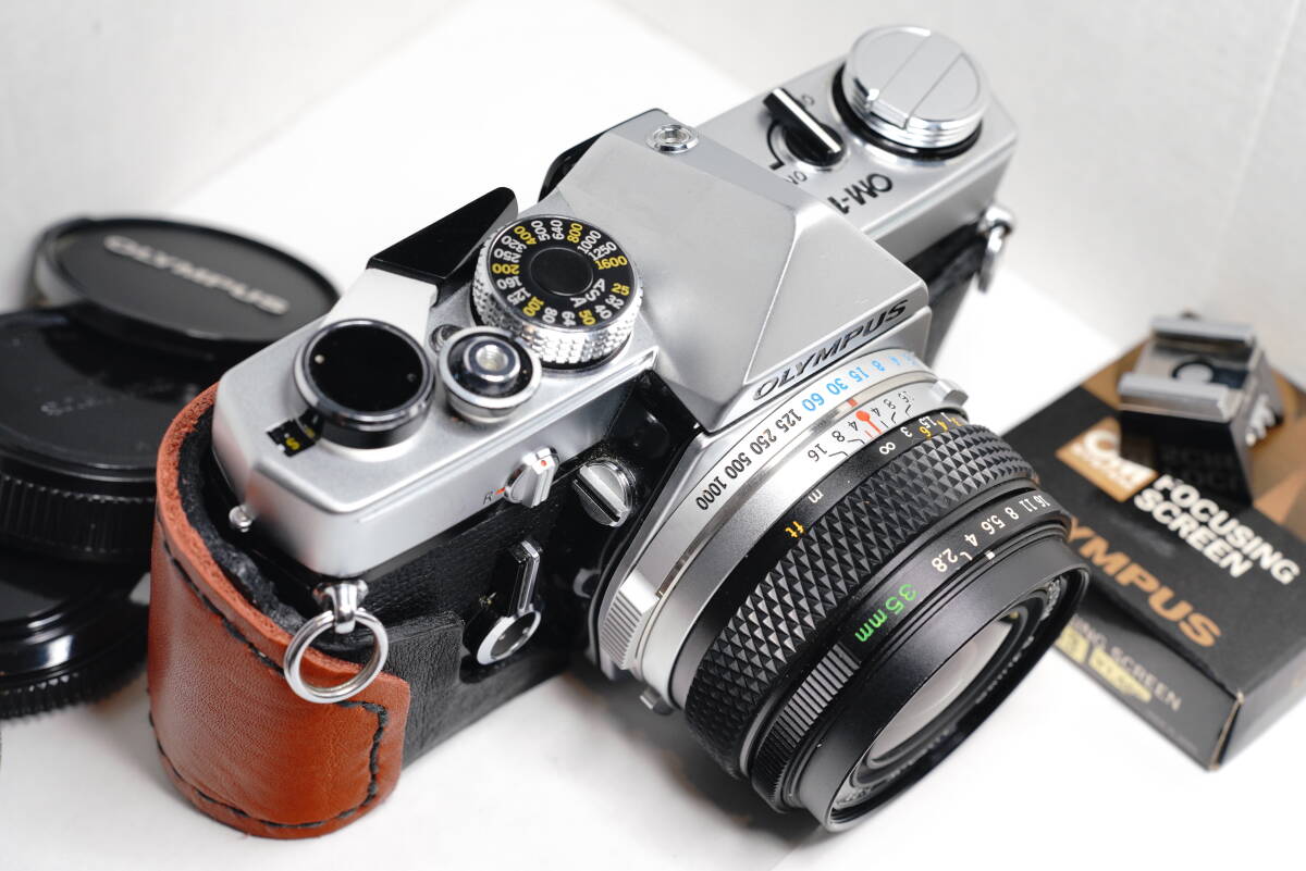 コレクション整理による出品(お宝放出)です。OLYMPUS OM-1+35mm 1:2.8です。シャッターは測定はしていませんが正常です。写真のとおりは使用感が少なく大変きれいなボディ・レンズです。レンズはキズ・カビの無くクリアです。露出計は動しています。絞り・シャッタースピードを変えて指針が可変します。プリズムは剥離は有りませんクリアです。付属品はハンドメイド製グリップ付本革底ケース・レンズFRキャップ、ボディキャップ、フォーカススクリーン、アクセサリーシューです。ノーキャンセル、ノークレーム、ノーリターンでお願いします。カメラ関連グッズを同時オークション開催中ですので「お宝」見つけて下さい。