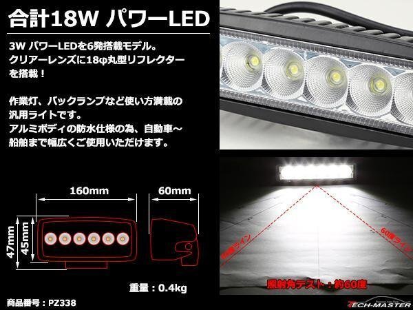 ■商品コード PZ338 ■商品タイトル 汎用18W 3WパワーLED×6発 18φ丸型リフレクター作業灯 ■発光色 6000K ホワイト ■数量 1個 ■防水性能 保護等級:IP67 ※レンズ周りに水がたまる使用方法は使用不可 ■特徴 3WパワーLEDを6発搭載モデル。 クリアーレンズに18φ丸型リフレクターを搭載! 作業灯、バックランプなど使い方満載の汎用ライトです。 アルミボディの防水仕様の為、自動車?船舶まで幅広くご使用いただけます。 ■対応電圧 DC10?30V ■照射角 60度 ■その他商品 作業灯(ワークライト) リレーハーネス LEDコントローラー ヒューズ |
