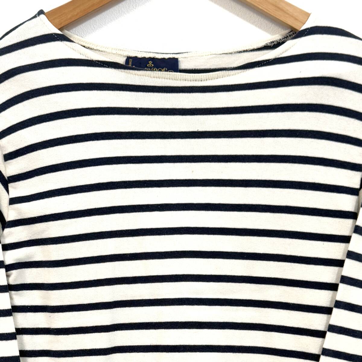 f3507ii Le Minor(ルミノア) サイズ2(M) ボーダーカットソー 長袖 コットン100% ホワイト×ネイビー レディース フランス製