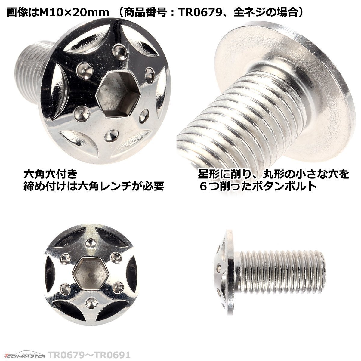 ボタンボルトを星形に削り、丸型の小さな穴を6つ削ったデザインボルトです。 ボルトの紛失時やドレスアップに最適なボルトです。 |