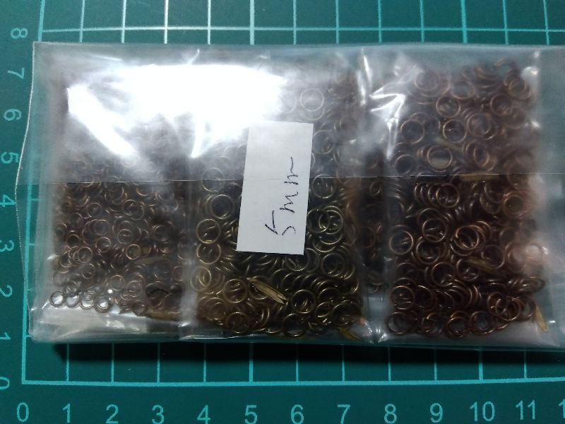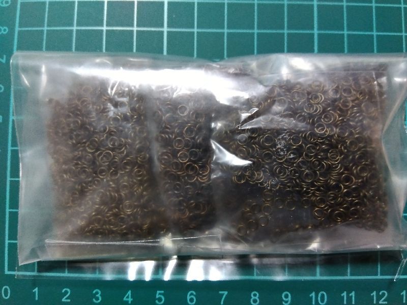 3~5mm程度の小さい丸カンで、線径1mmはないもので細いです。