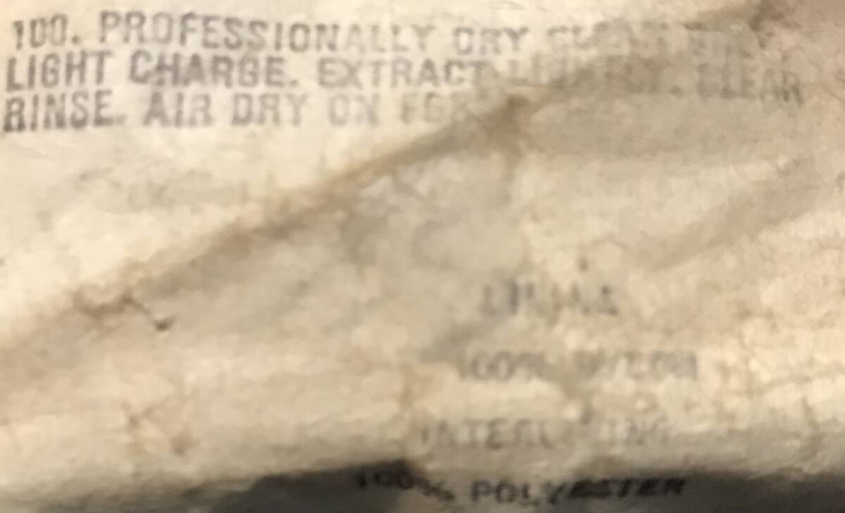 表記からLININGはポリエステル、正確な本体表記は読み取れないものの、質感から同年代のアイテム同様にレザーかと存じます。