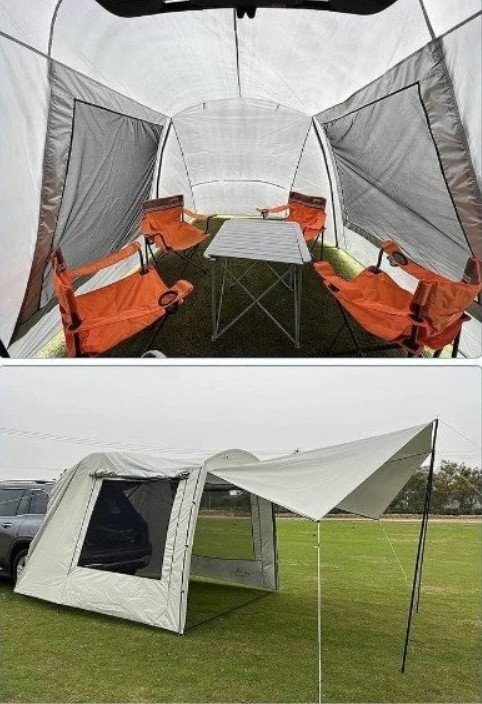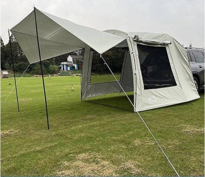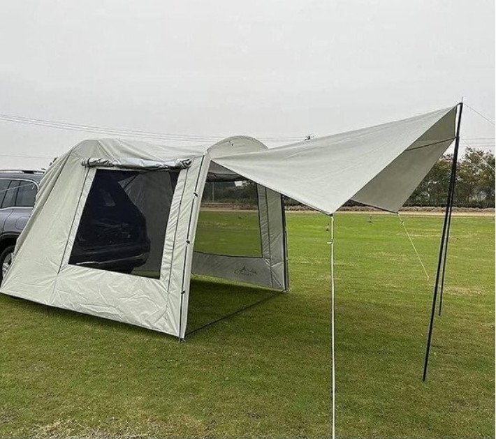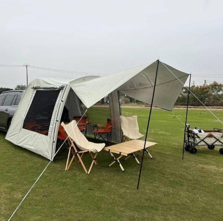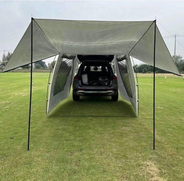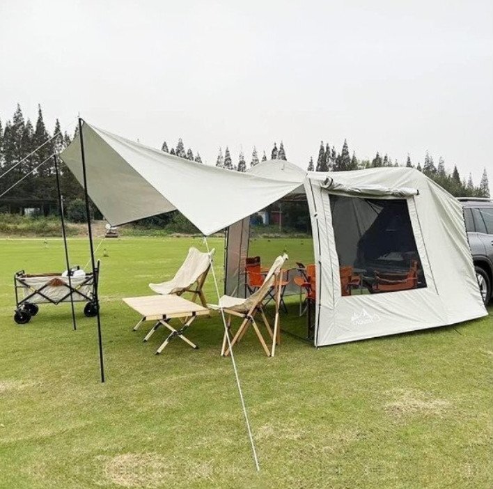 カーサイドタープ 車用タープテント タープ テント トランクテント 車と連結 5-6人用 簡単設置 キャンプ 通気性 防水 日よけ 車中泊 防災