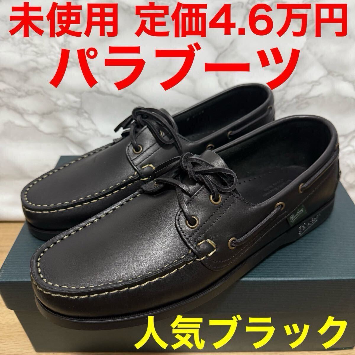パラブーツ paraboot デッキシューズ バース 未使用 革靴 本革 ブラック 黒 レザー シューズ サイズ9 27.5cm