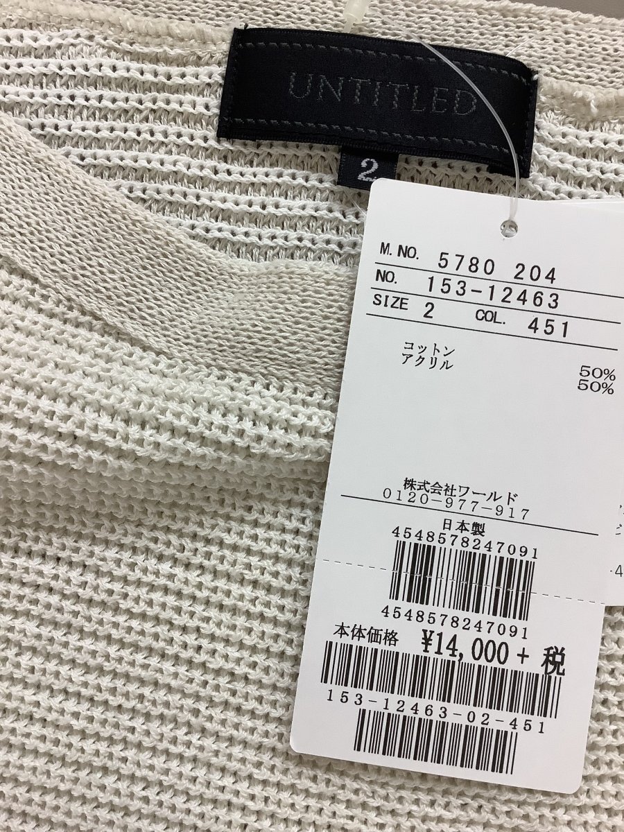 | アンタイトル (UNTITLED) 定価14000円 タグ付き未使用 きなりニット 【表示サイズ】 2 【平置き実寸】 脇下身幅 45cmほど 着丈 55cmほど 肩幅 50cmほど そで丈 38cmほど 【季節感】春向け 【状態その他】 未使用 ・肩パット無し 当店管理番号:10^141087 |