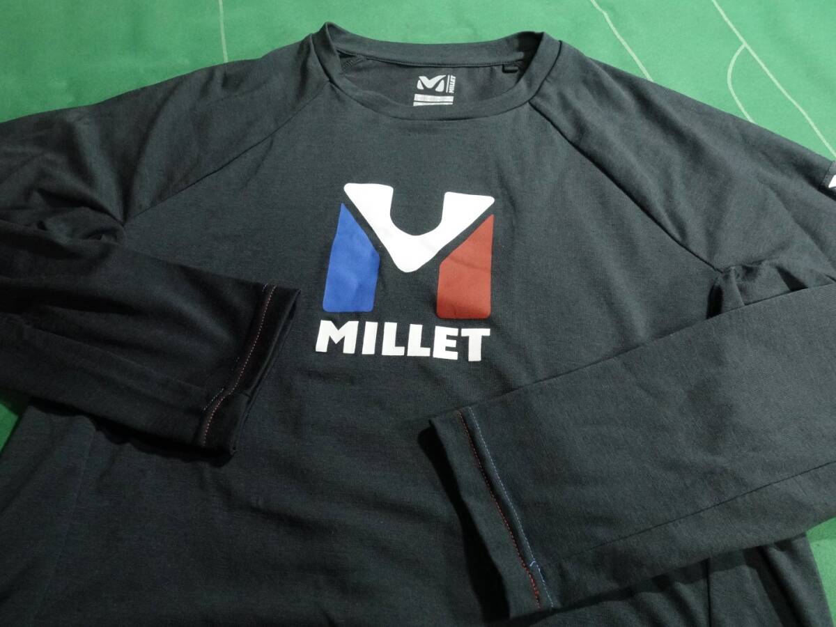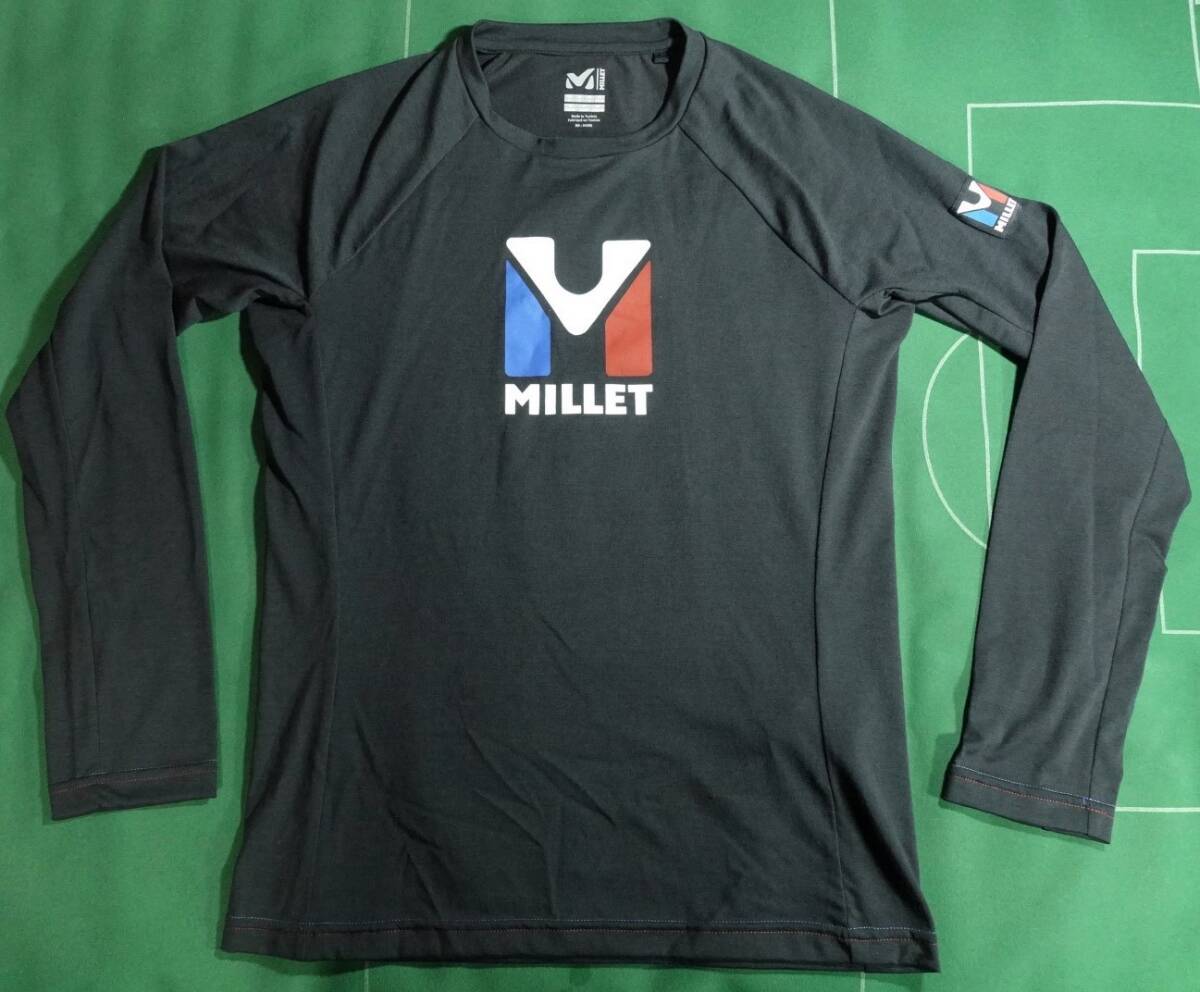 ▲MILLETミレー ウール/ポリエステル素材 ベースレイヤー トリロジー ロゴ ウール Tシャツ LS ブラック MEN'S JP-M 美品!!!▲