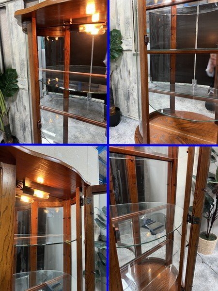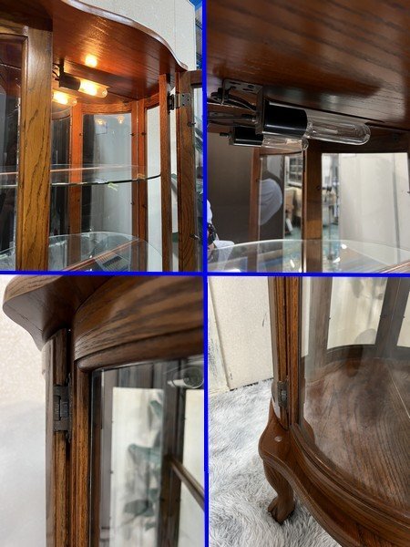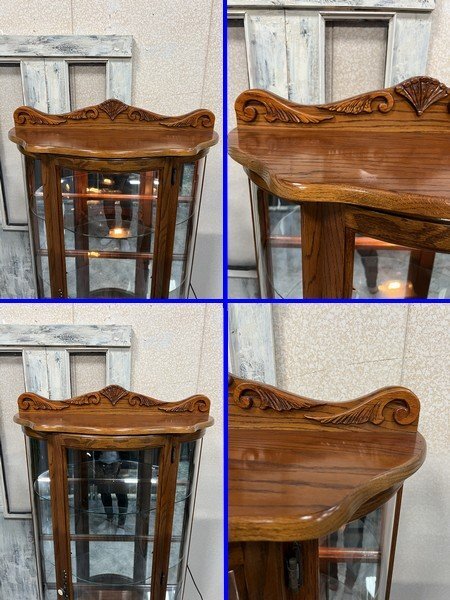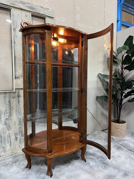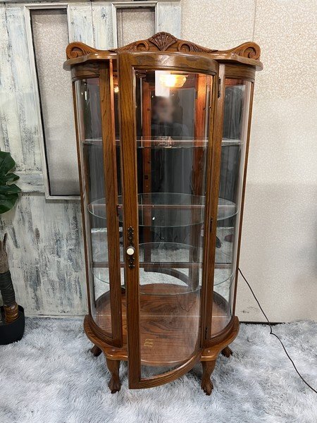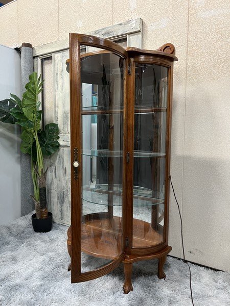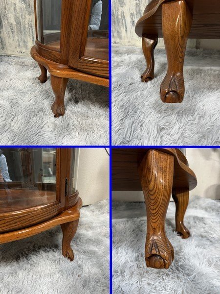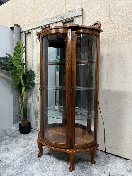 §綺麗【 輸入家具 / クラシックガラスキャビネット ショーケース 飾り棚 ディスプレイ 猫脚 獣脚 木製 アンティーク家具 】P02222