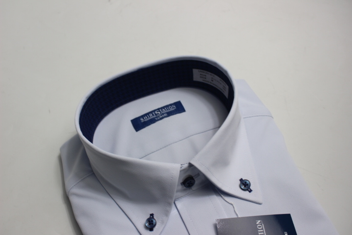 送料185円【新品】SHIRT STATION 別格ノーアイロン/BDワイシャツ長袖/ニット/吸水速乾/形態安定 3L(45-86) 薄ブルー無地 UNW201/013(7A213