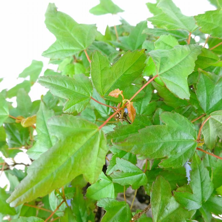 | ■植物ですので撮影時期や季節によって剪定などの手入れにより写真から変化がございます。撮影日をご確認のうえ、ご注文ください。 【楓盆栽】 春先に芽吹き、夏頃には新緑、秋頃には紅葉、冬は寒樹姿と四季を通して楽しめる植物です。 |