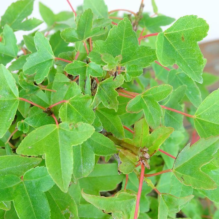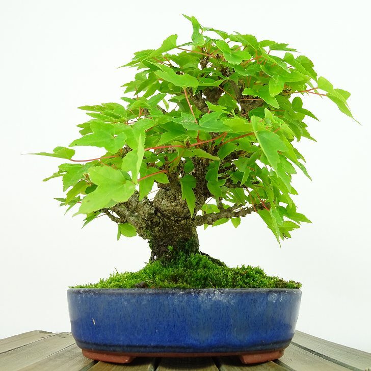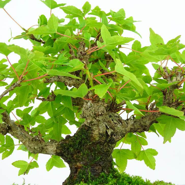 | ■植物ですので撮影時期や季節によって剪定などの手入れにより写真から変化がございます。撮影日をご確認のうえ、ご注文ください。 ■春頃~7月上旬。葉すかし、葉刈りをおこないます。目的として全体的な枝や葉の量を減らし風通しを良くし、幹にしっかりと日光を当てるため。 【楓盆栽】 春先に芽吹き、夏頃には新緑、秋頃には紅葉、冬は寒樹姿と四季を通して楽しめる植物です。 |