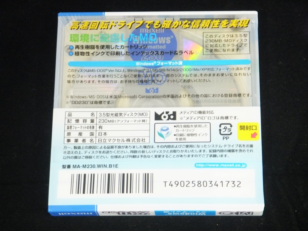 【未使用】 マクセル maxell 【未開封】MOディスク 230MB Windowsフォーマット MA-M230.WIN.B1E
