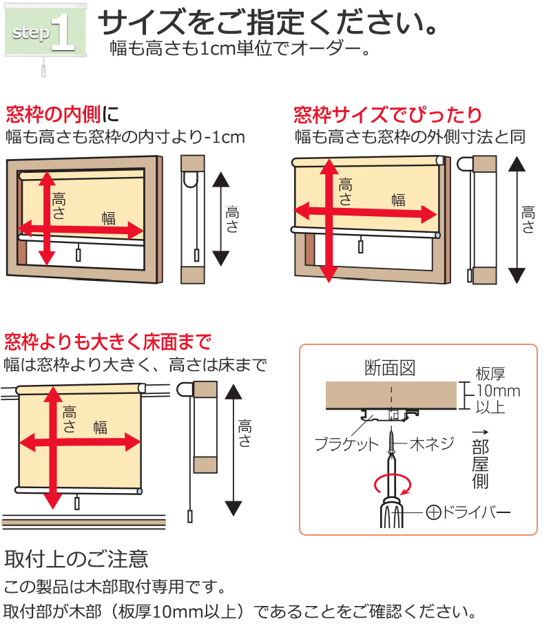 お求めやすい規格サイズから、1cm単位でオーダーロースクリーンも対応可能です。