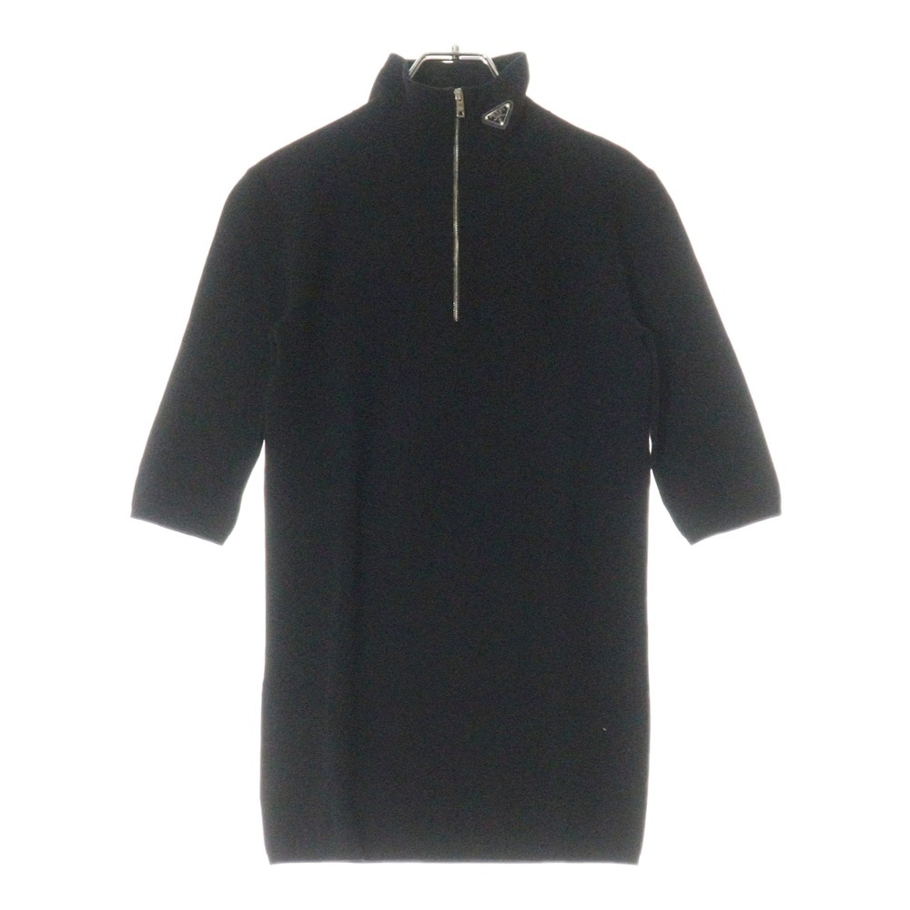 PRADA プラダ トライアングルロゴプレート付き ハイネック 5分袖 ジップアップ ミニワンピース レディース ブラック P26414 S212 1Y86