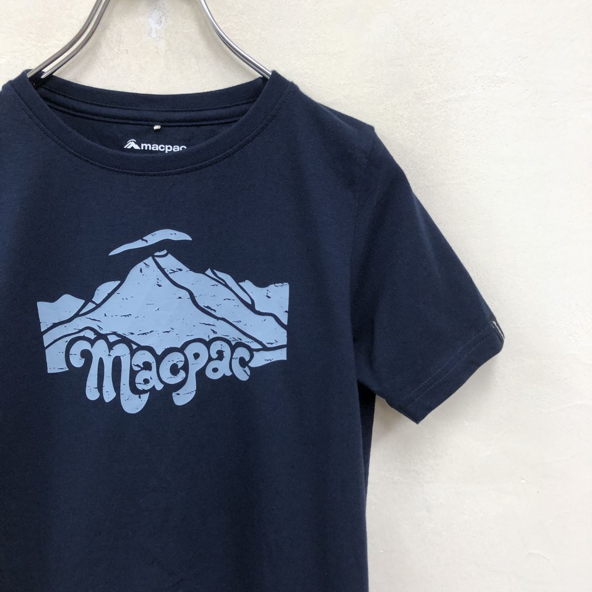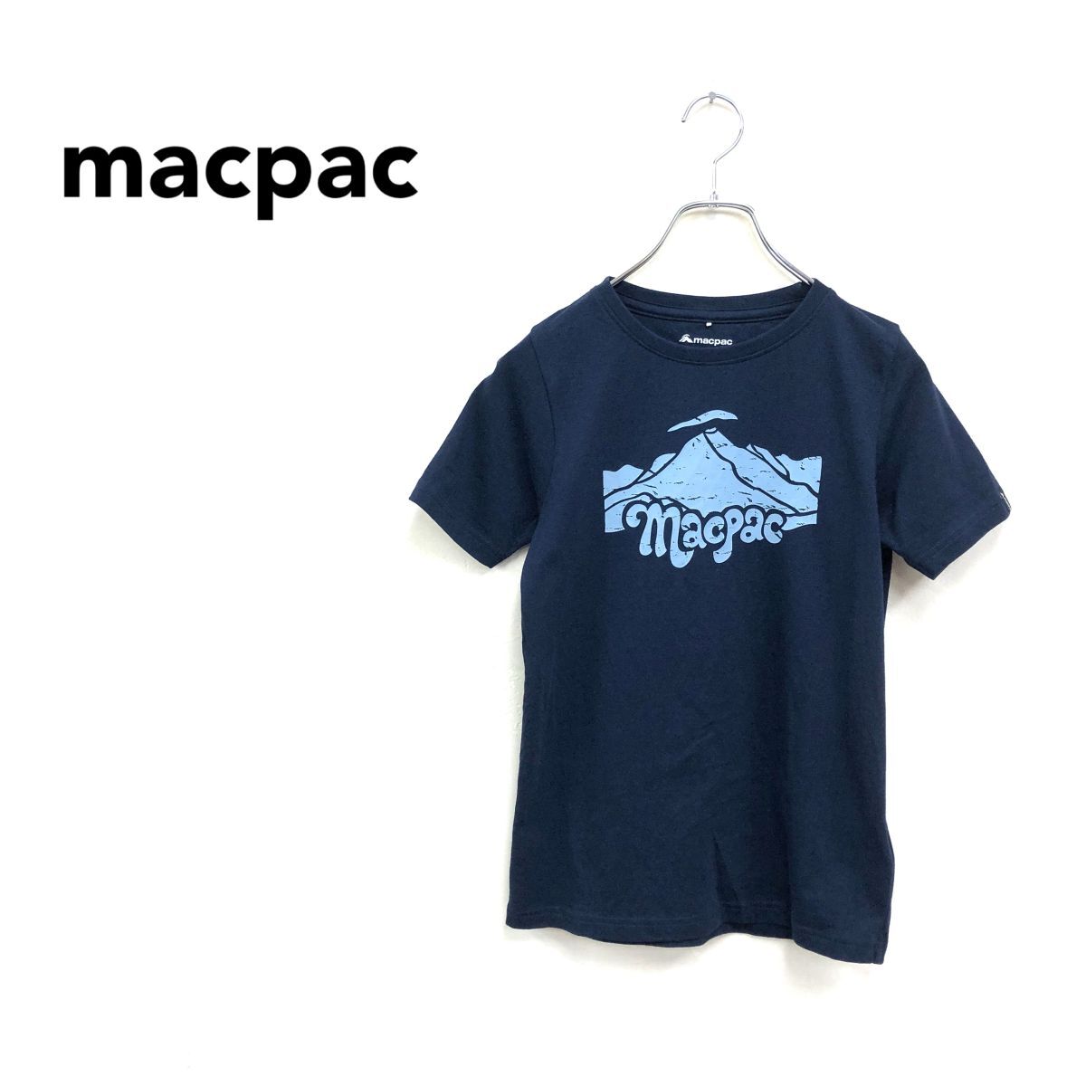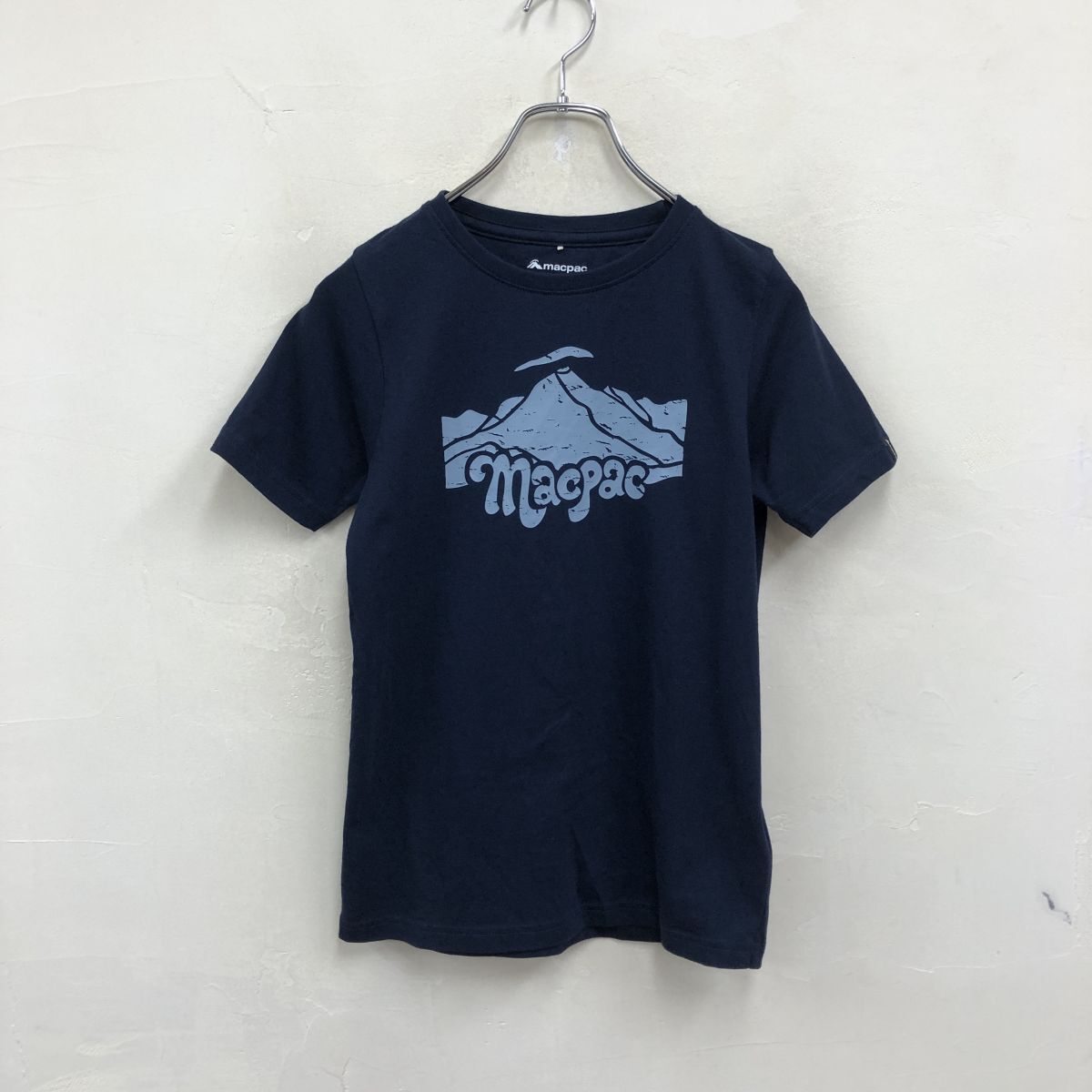 2H3119-G-N◆ macpac マックパック プリントTシャツ キッズ ジュニア ロゴ 山 半袖 クルーネック リブ オーガニック ◆ size12 ネイビー 綿