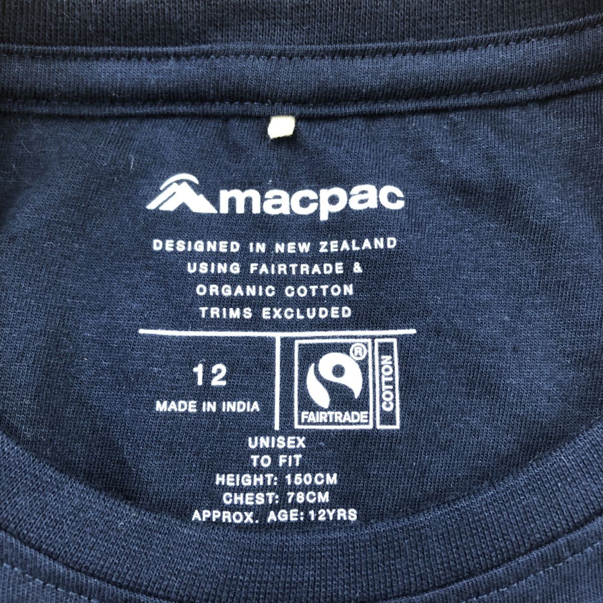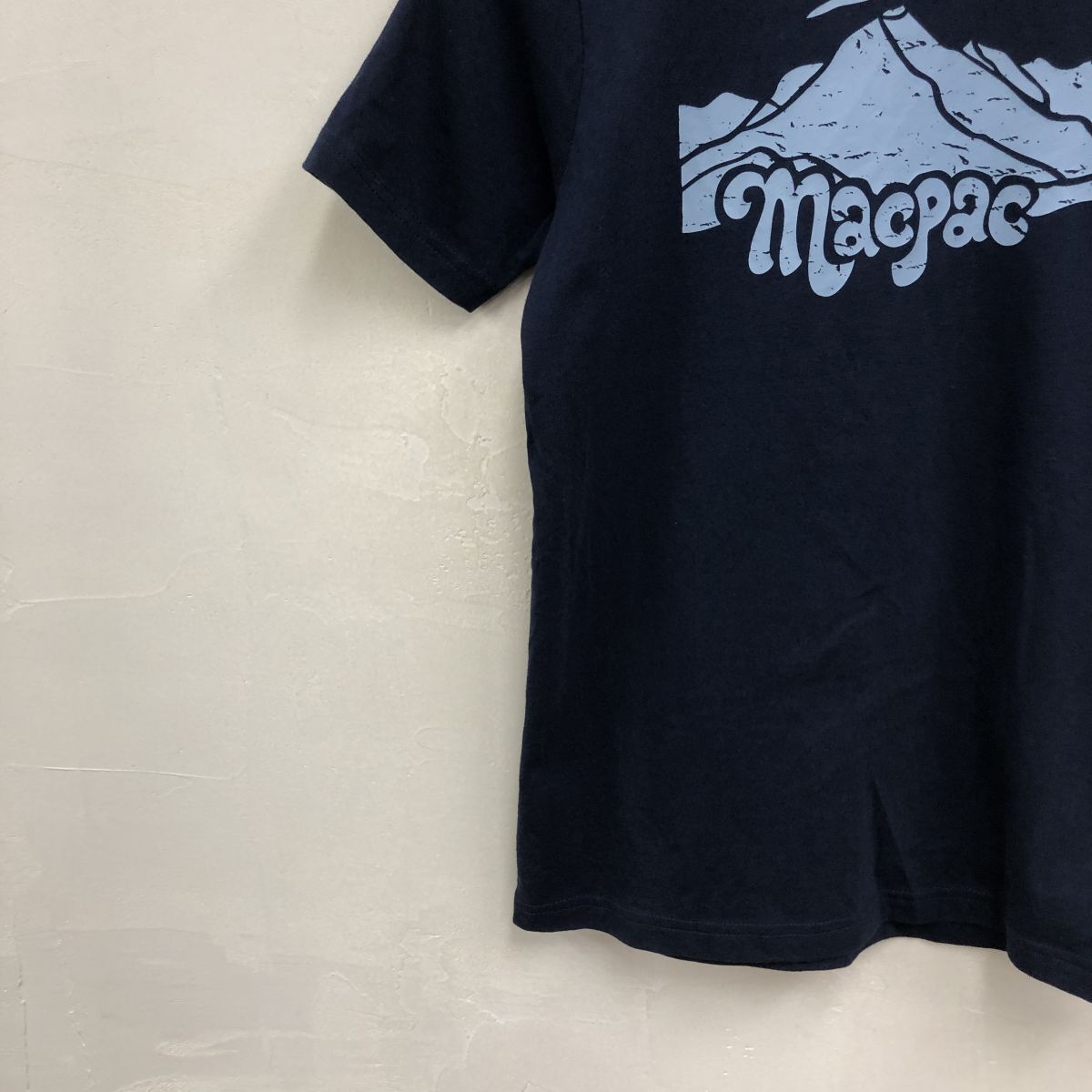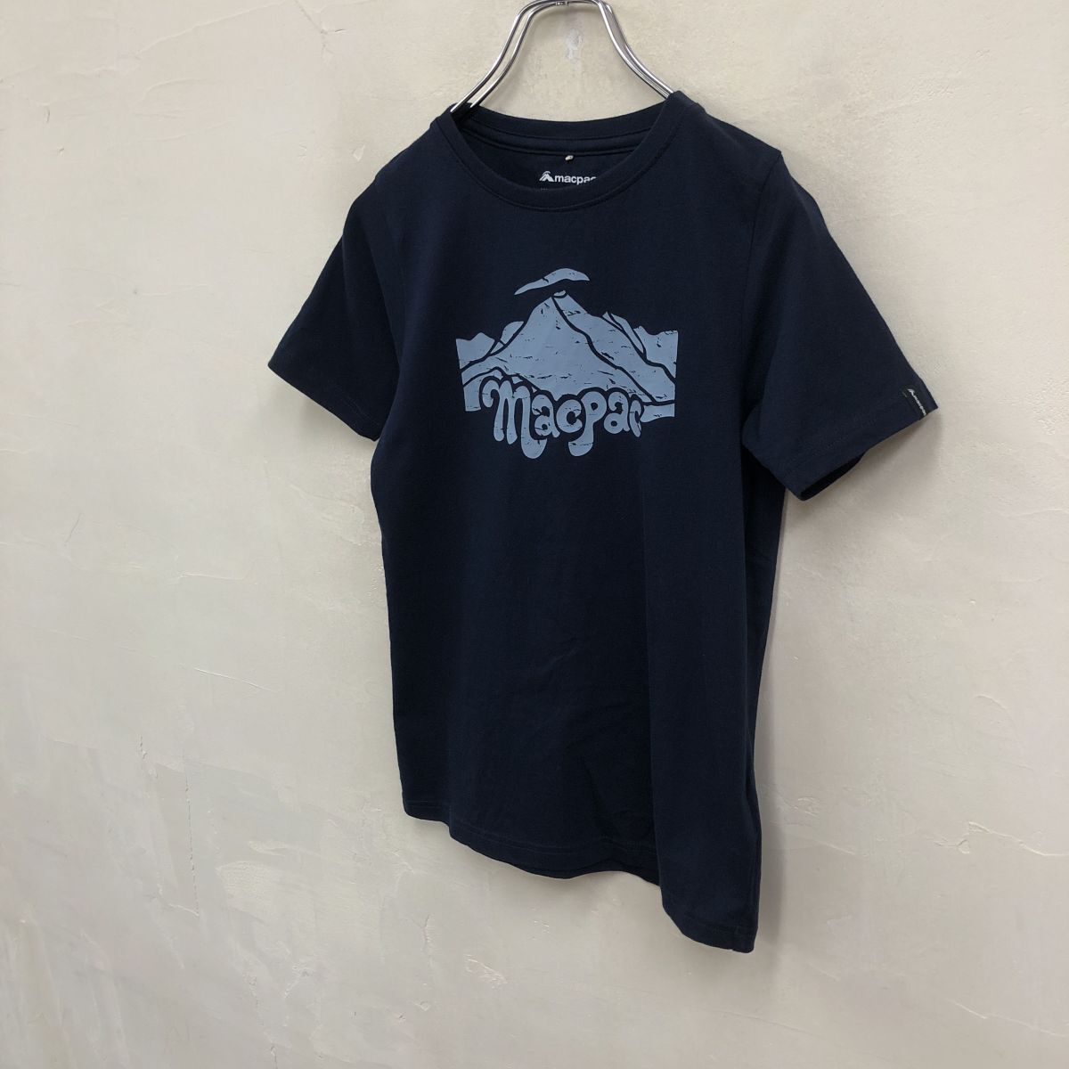 2H3119-G-N◆ macpac マックパック プリントTシャツ キッズ ジュニア ロゴ 山 半袖 クルーネック リブ オーガニック ◆ size12 ネイビー 綿