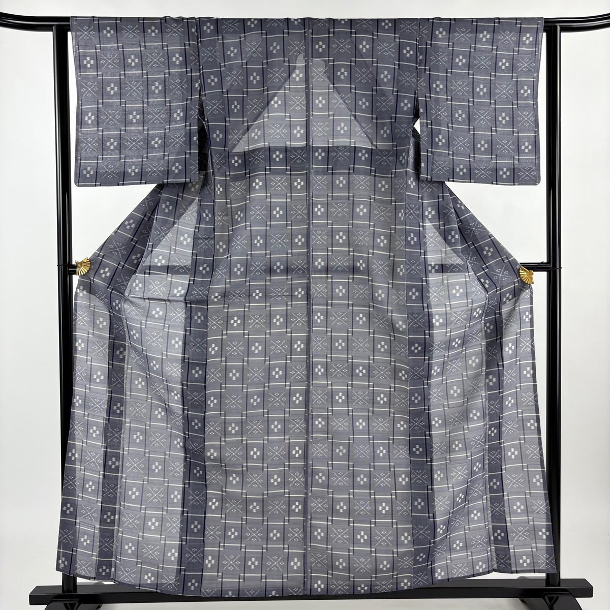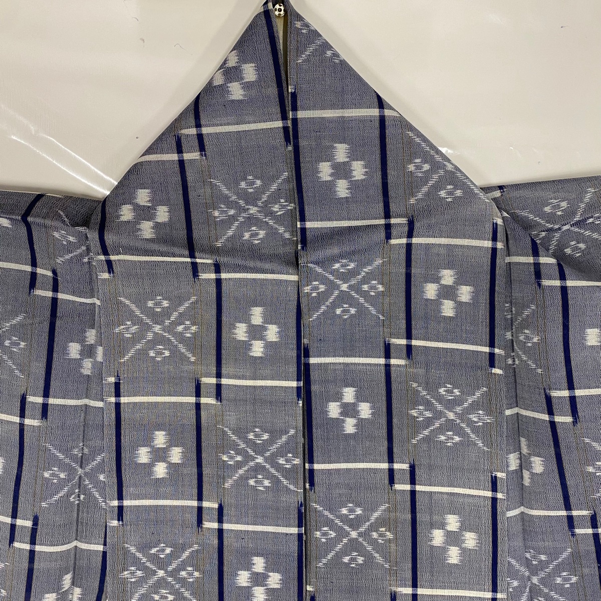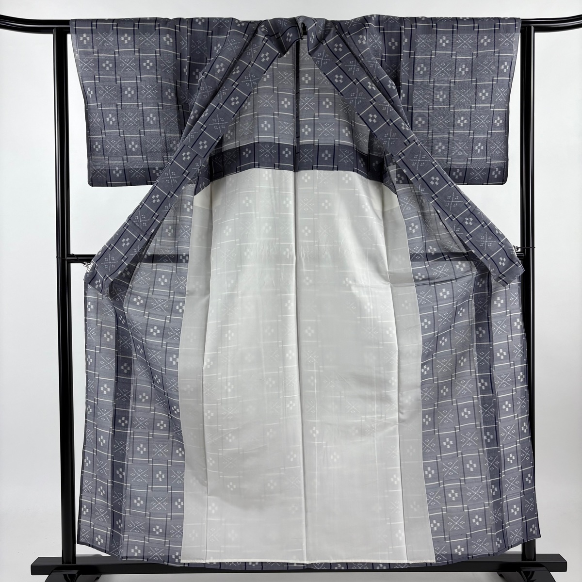 | 紬 秀品 夏紬 幾何学模様 青灰色 薄物 身丈158 裄丈61.5 S 正絹 【中古】 |