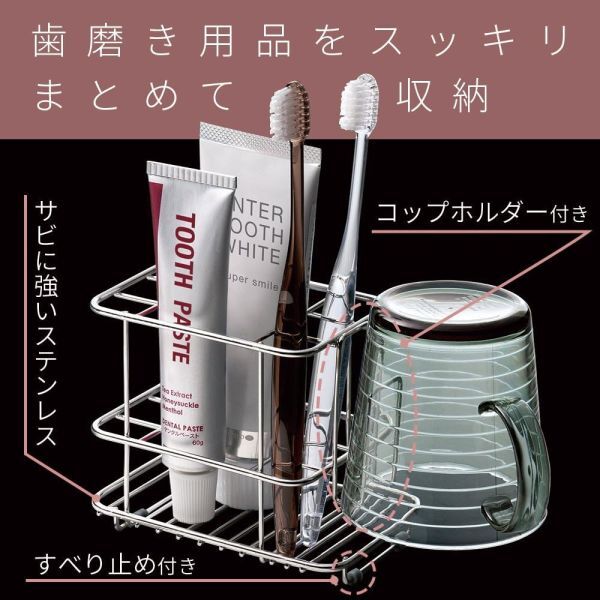 歯みがき用品をコンパクトにまとめて収納できる歯ブラシスタンド。