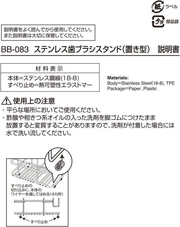 材質 本体=ステンレス鋼線(18-8)、すべり止め=熱可塑性エラストマー