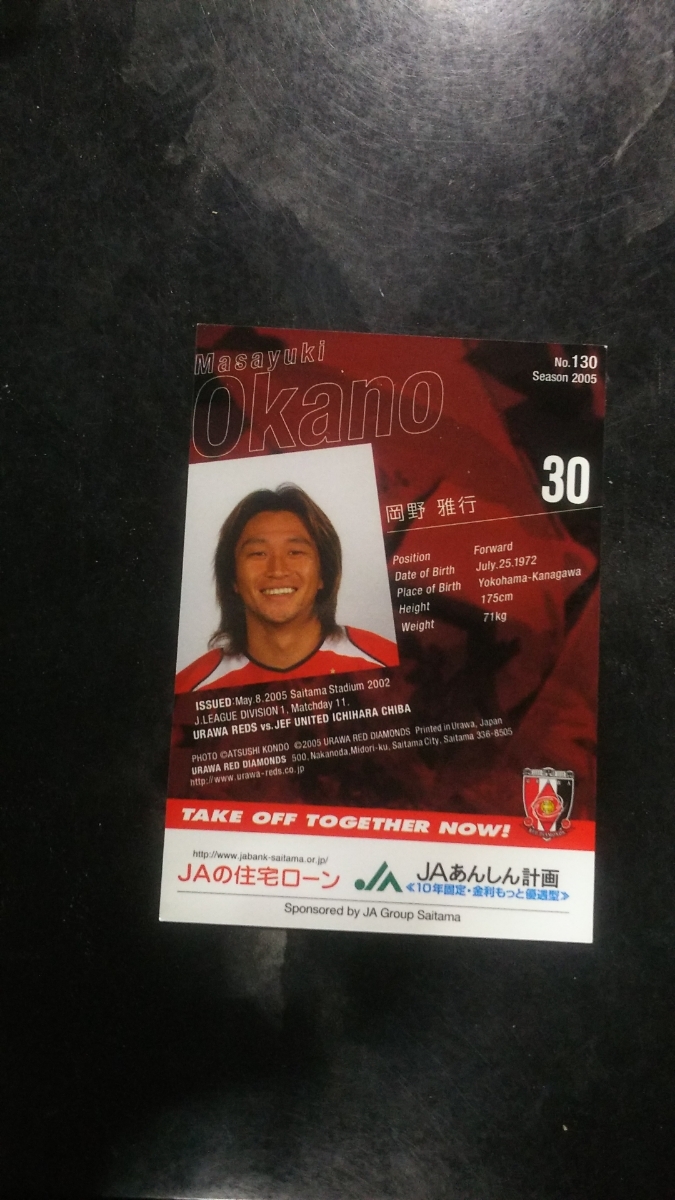 2005年の浦和レッズのマッチデーカードの岡野雅行選手になります。カードスリーブと硬質のカードケースに入れて発送いたします。新品になりますのでノークレーム、ノーリターン、ノーキャンセルでお願いします。