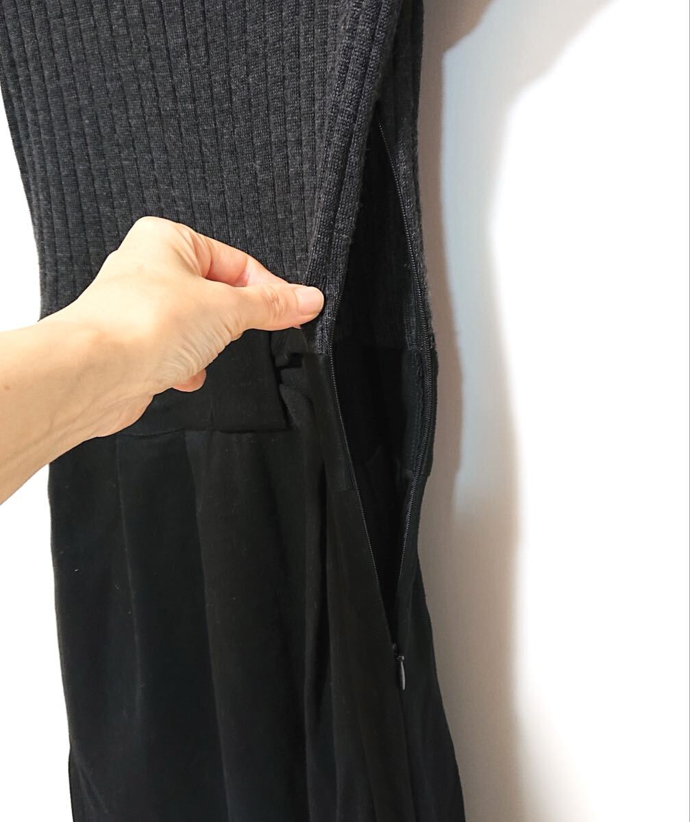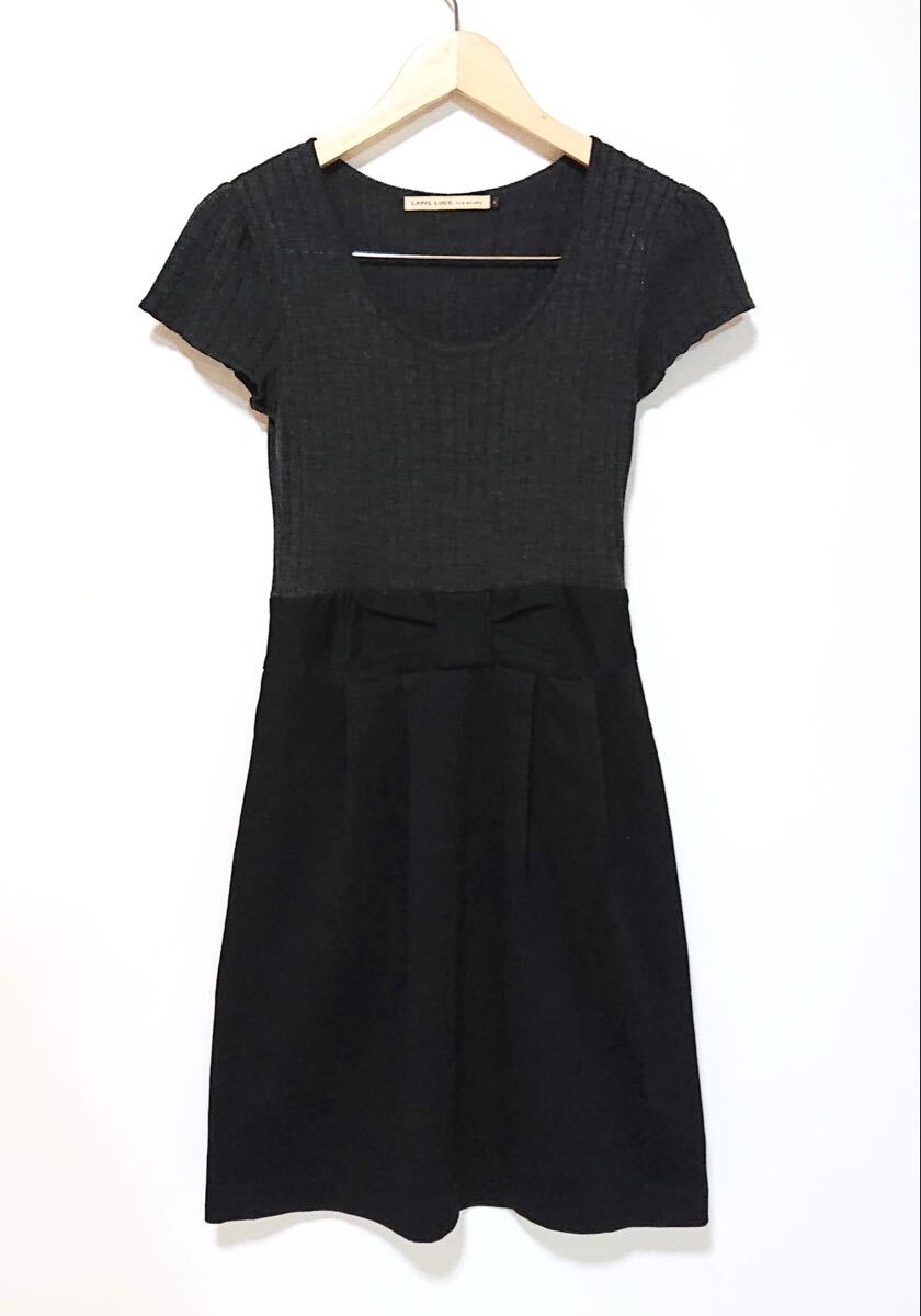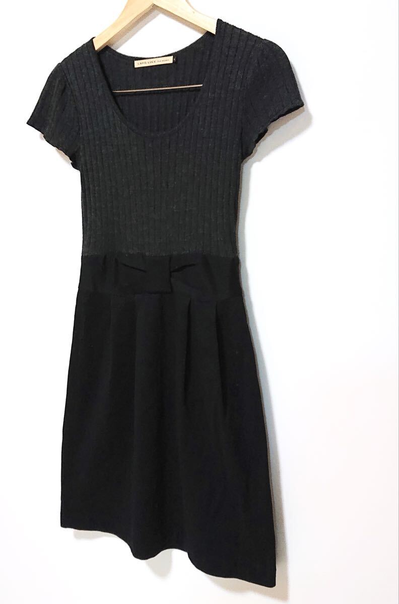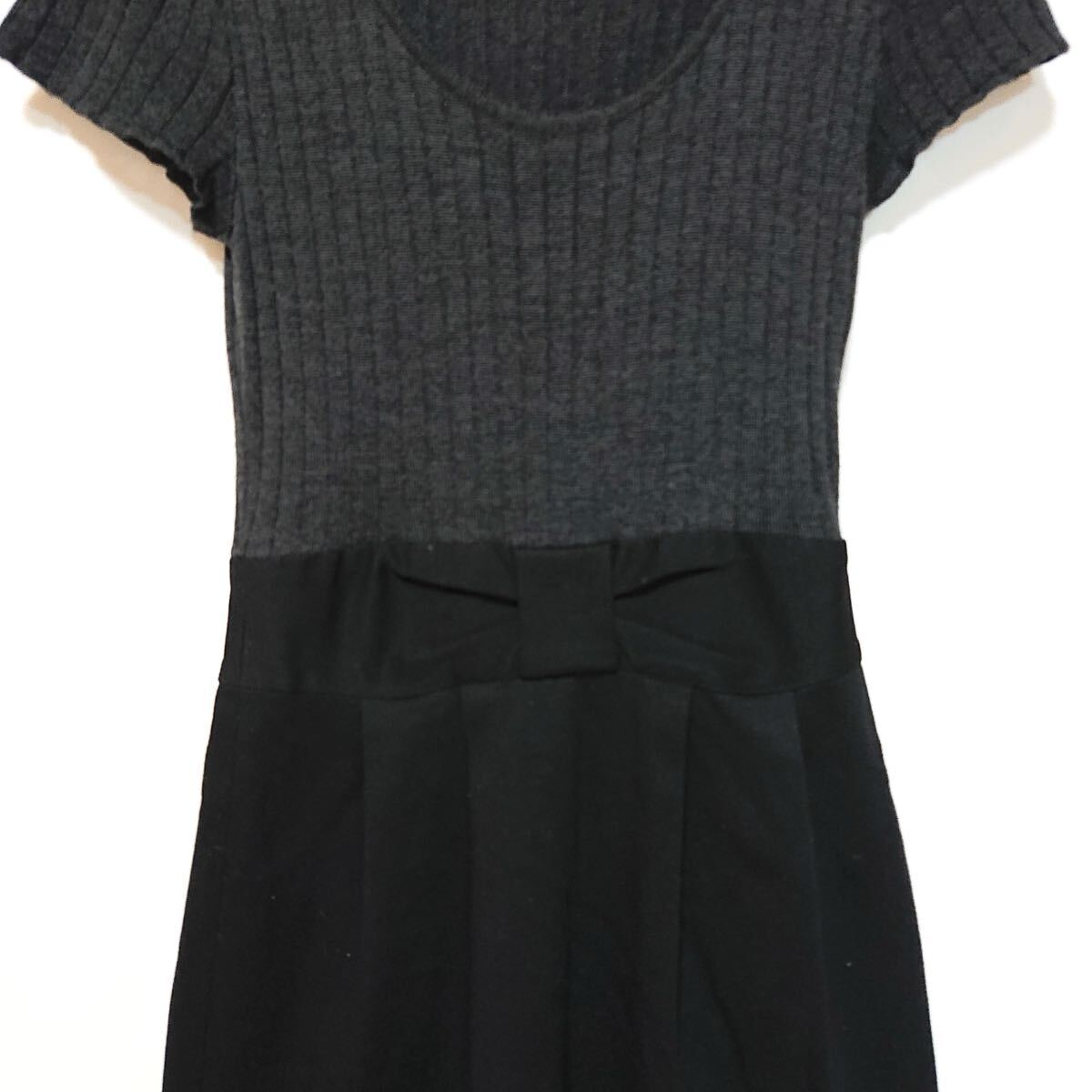 h4197gg 日本製 LAPIS LUCE PER BEAMS(ラピスルーチェパービームス)サイズ36(S位) 半袖ニットワンピース グレー×ブラック レディース