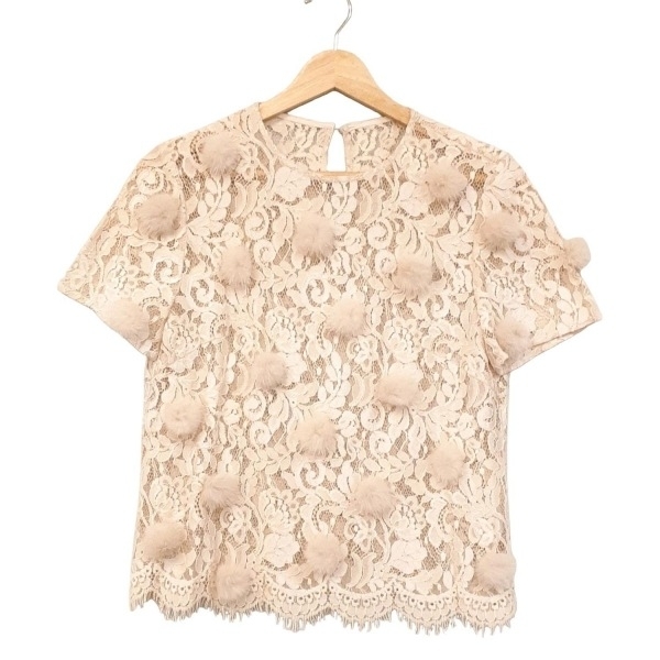 ダイアグラム Diagram GRACE CONTINENTAL 半袖カットソー サイズ36 S - ベージュ レディース クルーネック/ポンポン部分ミンク/レース 美品