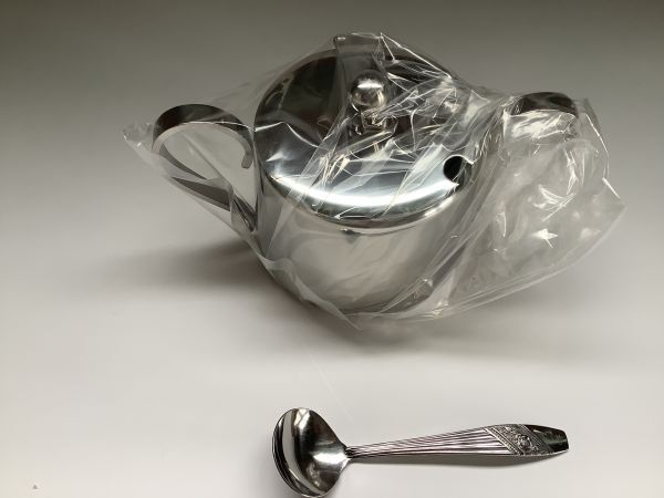 ★☆ステンレス製◎シュガーポット7人用◎本体フタ一体型◎国産◎未使用品◎スプーンおまけ付K-7◎送料込み☆★