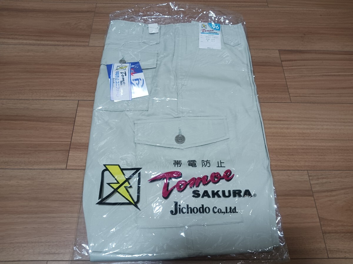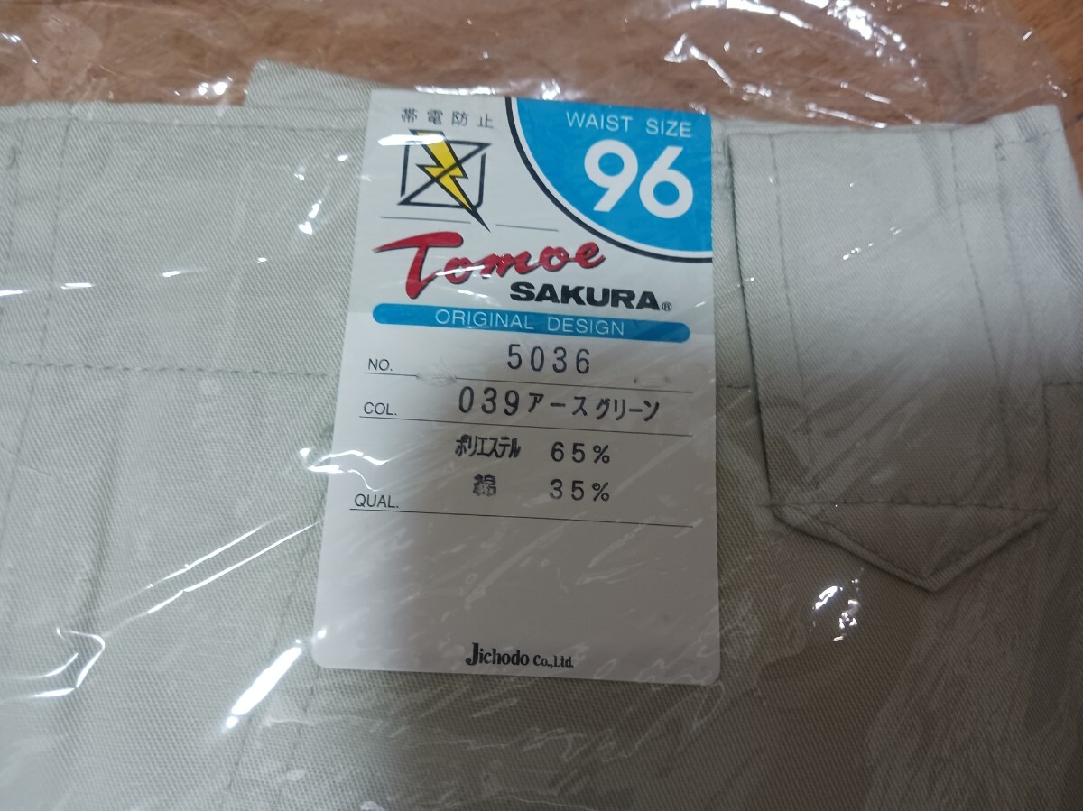 5195 自重堂 5036|エコ製品制電カーゴパンツ|アースグリーン|W96㎝|春夏|Tomoe SAKURA|新品未使用|帯電防止|綿ポリ混紡|作業ズボン|制電