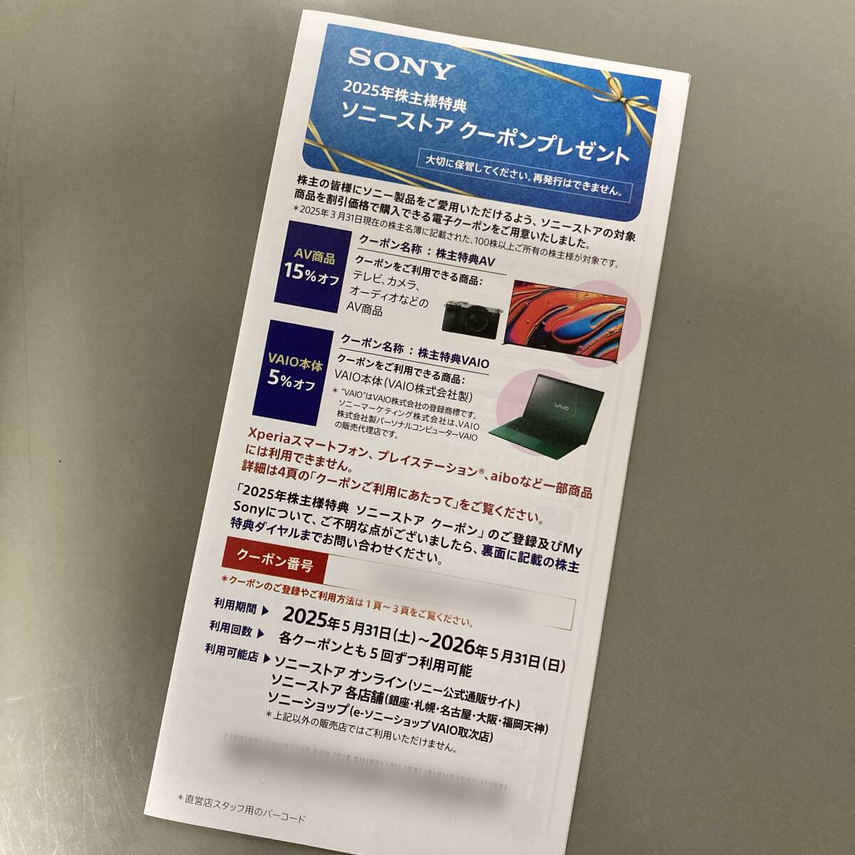 SONY 2025年 株主優待 ソニーストアクーポン/SONY 株主特典クーポン
