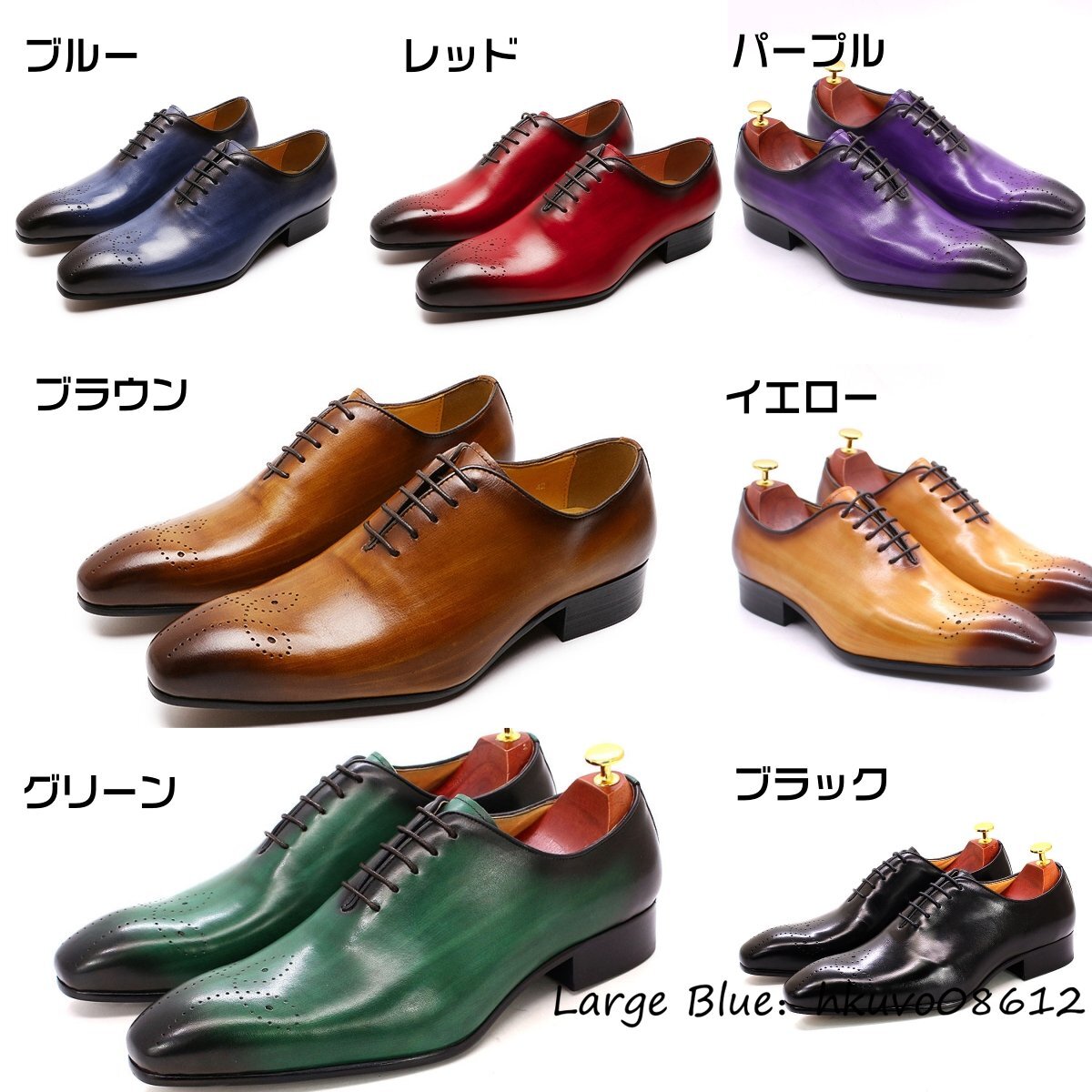 定価10万★超希少 ビジネスシューズ メンズ 職人手塗仕上げ 彫り 本革レザーシューズ 最高級 紳士靴 フォーマル 革靴 牛革 グリーン 26.5cm