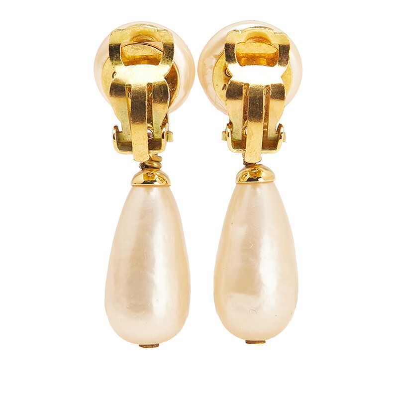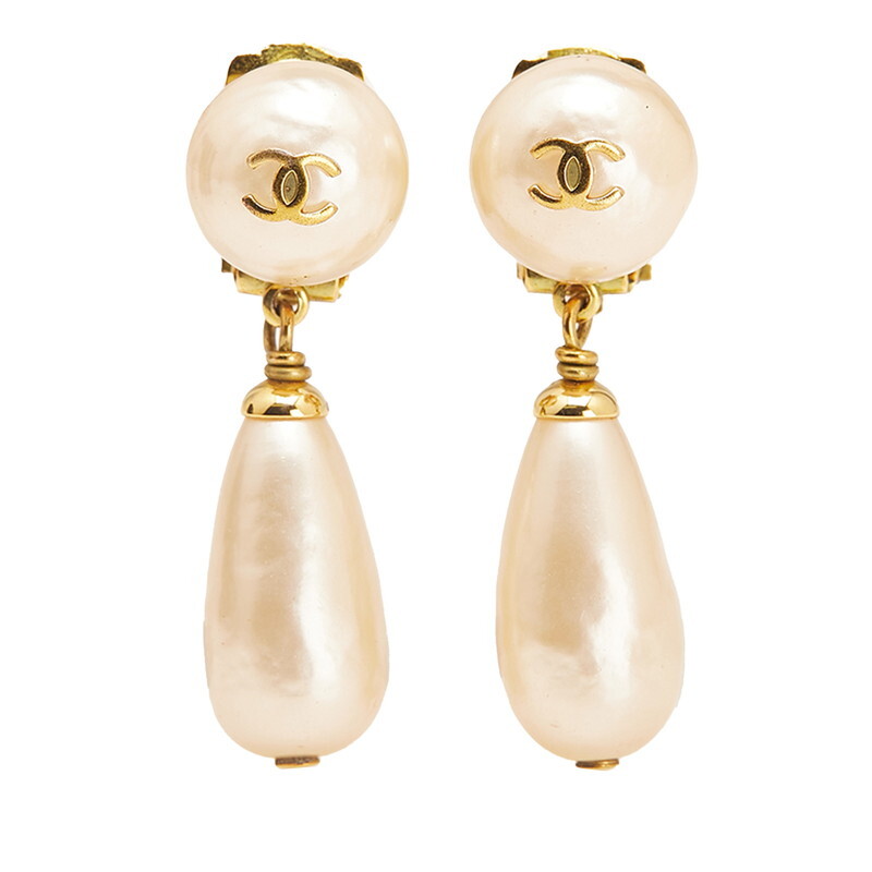 シャネル ヴィンテージ ココマーク ティアドロップ イヤリング スイング ゴールド メッキ フェイクパール レディース CHANEL 【中古】