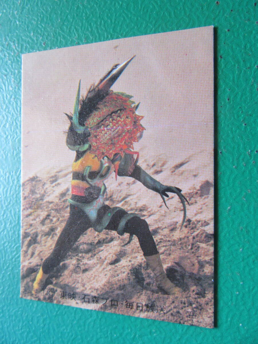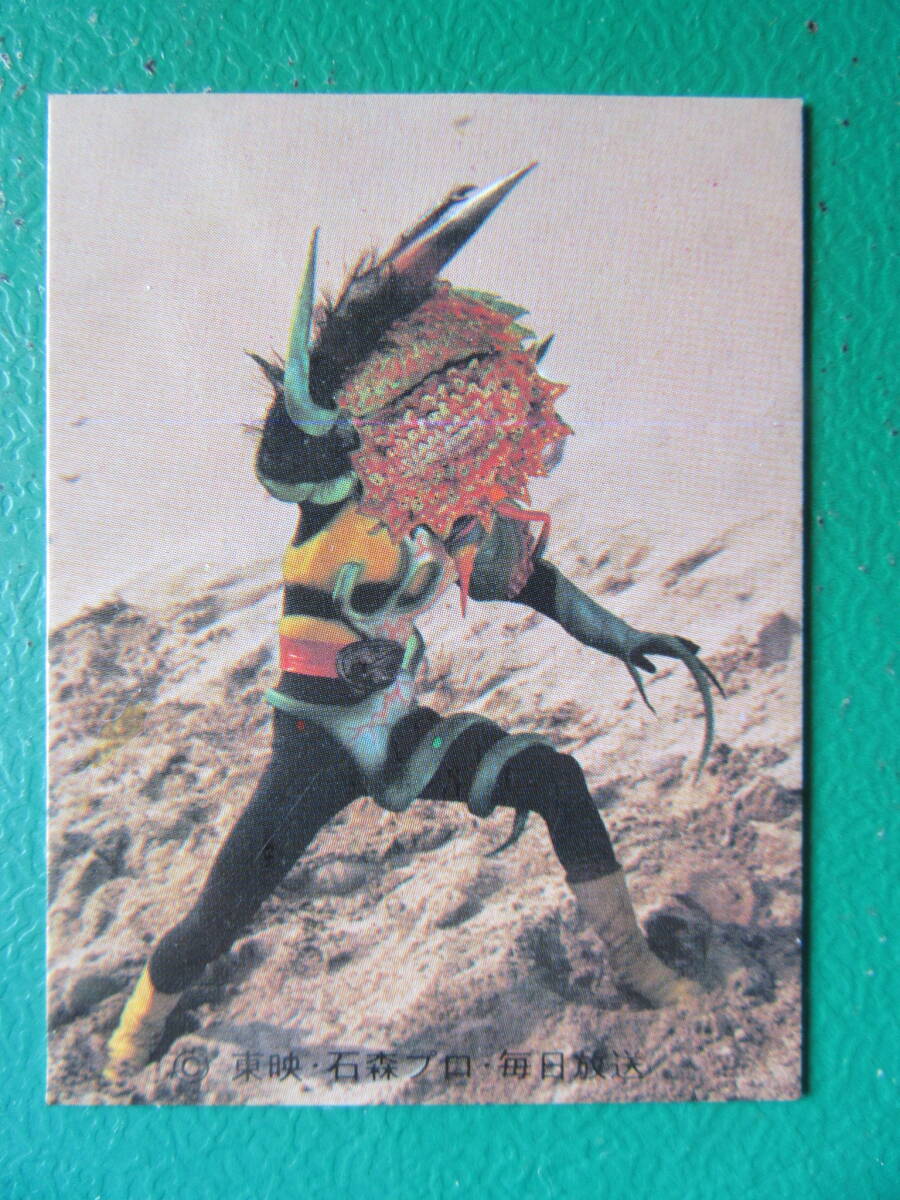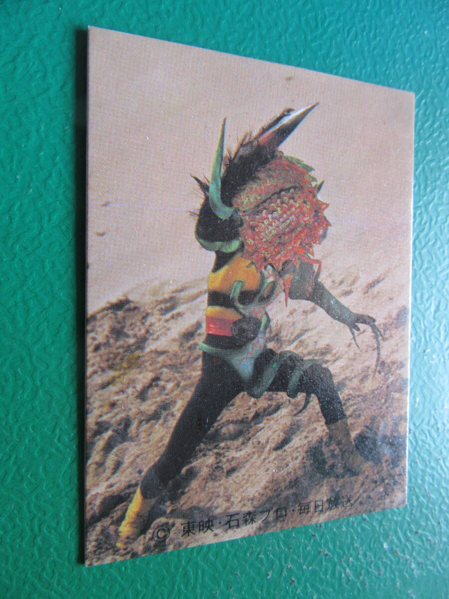 写真のカードです、今から50年以上前のカルビー仮面ライダースナックに付いていた、伝説のライダーカード、当時物、本物です。コレクションにどうでしょうか。
