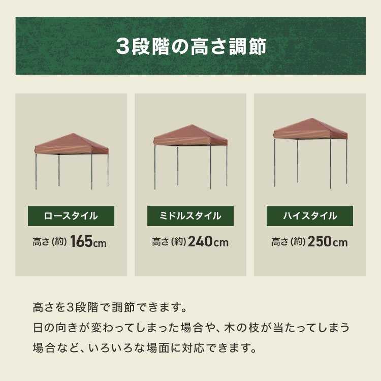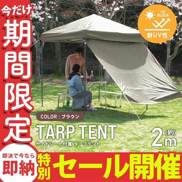 | 日よけで、直射日光から守る! コンパクトなサイズ2m×2mのワンタッチタープテントです。 |