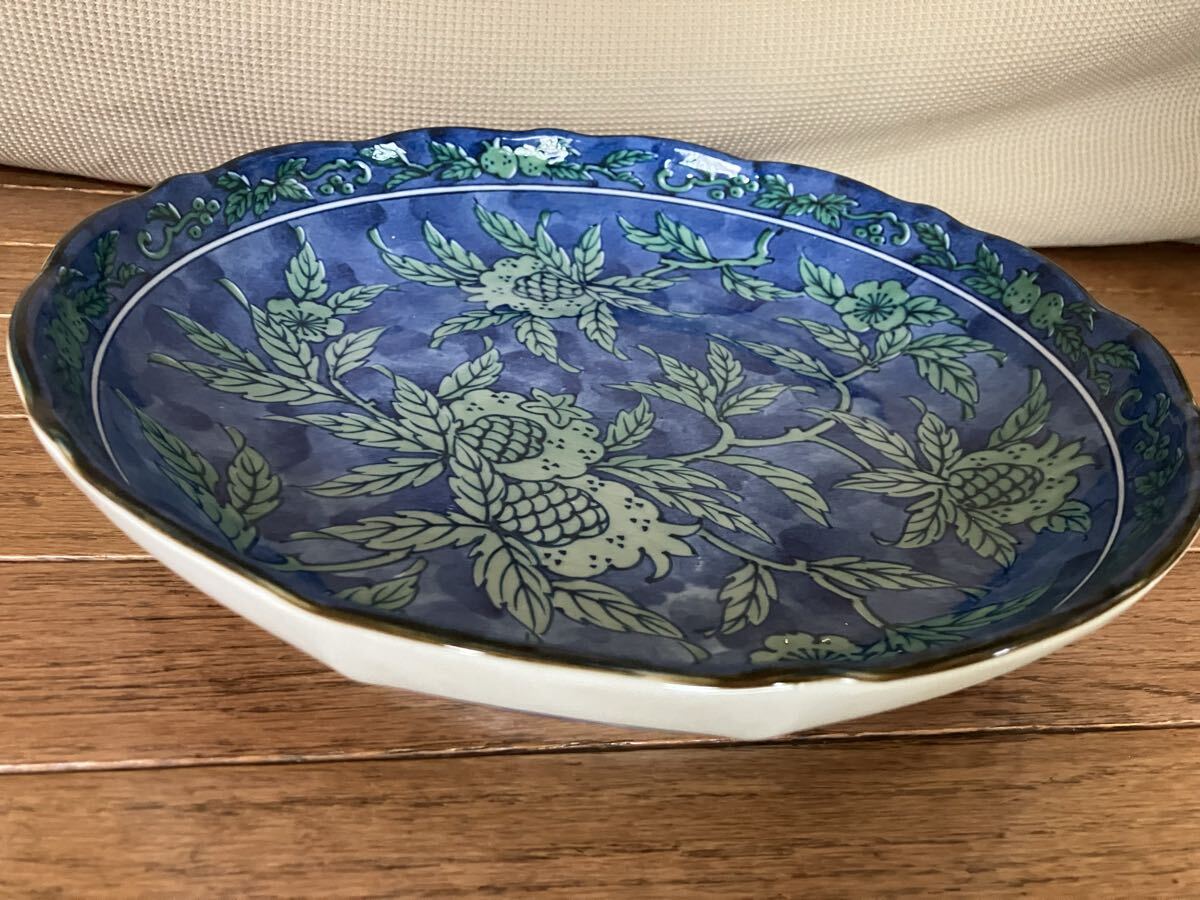 ★有田焼★双峰★大皿★ワンプレート★集まり★パーティ★和皿★青★26センチ★